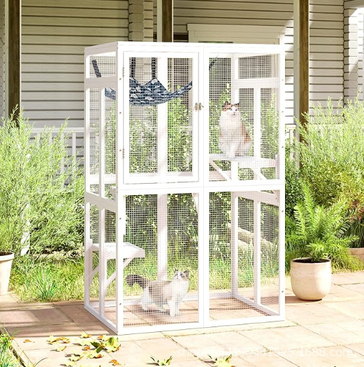 야외용 나무 고양이 울타리, 실내용 고양이 화장실, 고양이 클라이밍 프레임, 나무 애완동물 하우스 쉼터스토어 가기