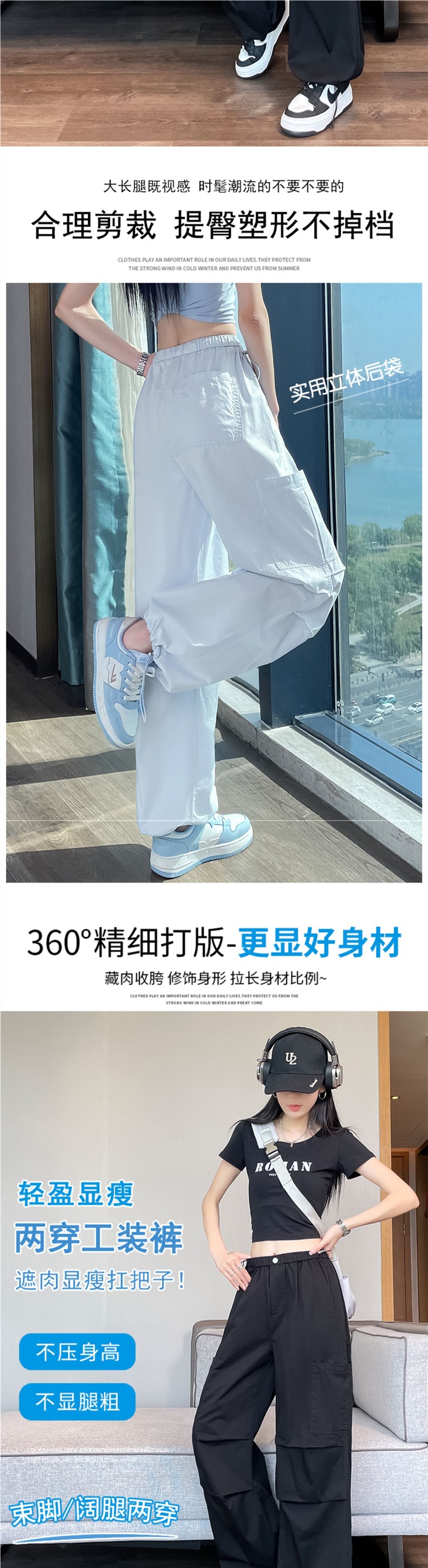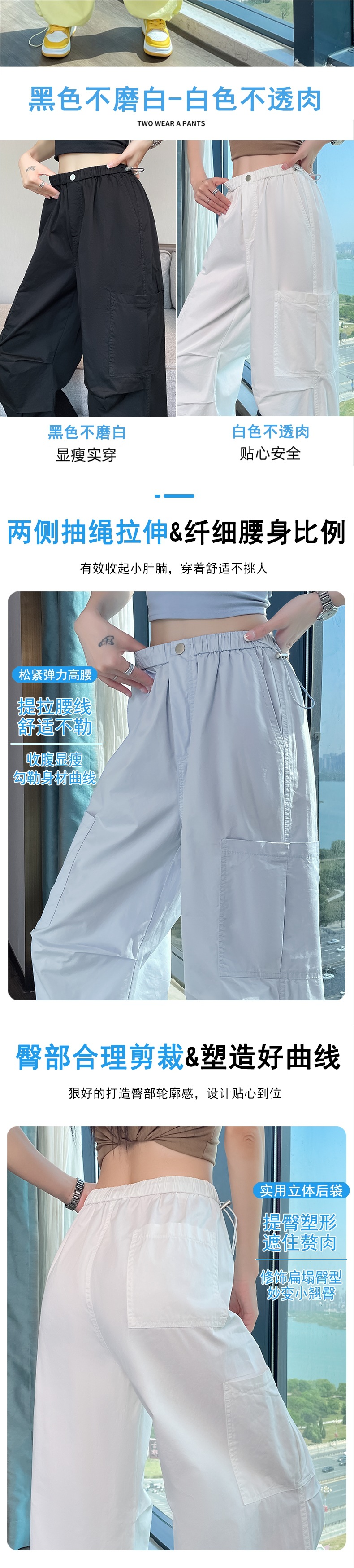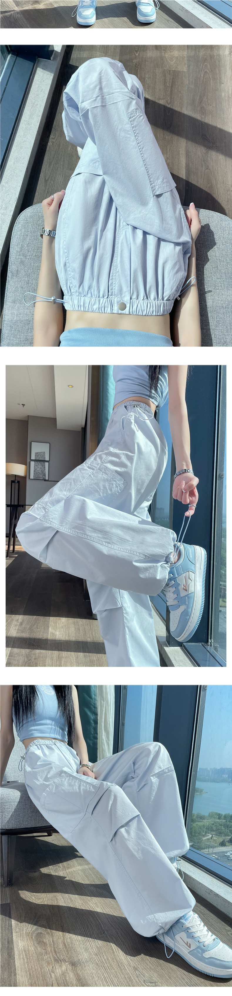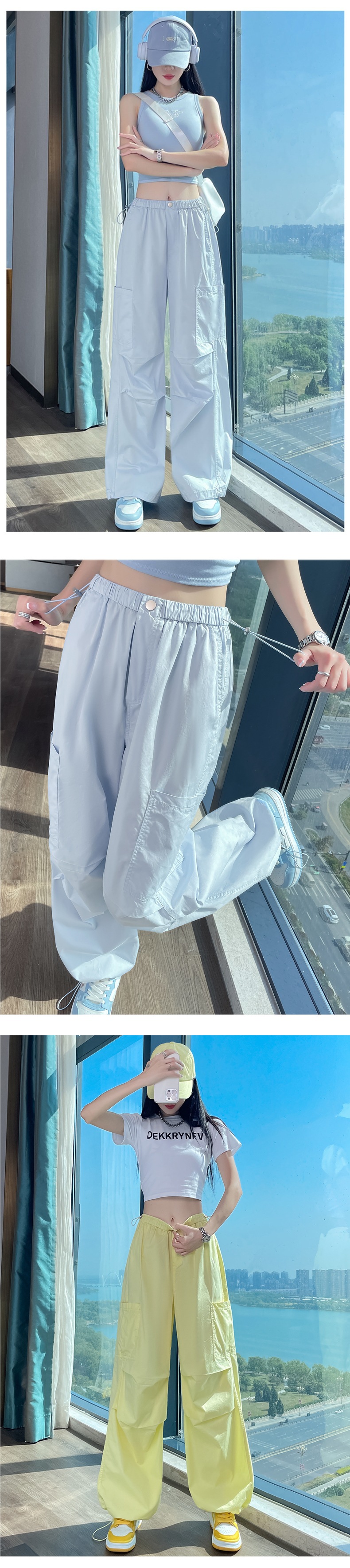 여성용 크로스보더 블루 속건성 작업복 여름 얇은 도파민 하이킹 바지 아이스 실크 스포츠 낙하산 바지 자외선 차단 바지스토어 가기
