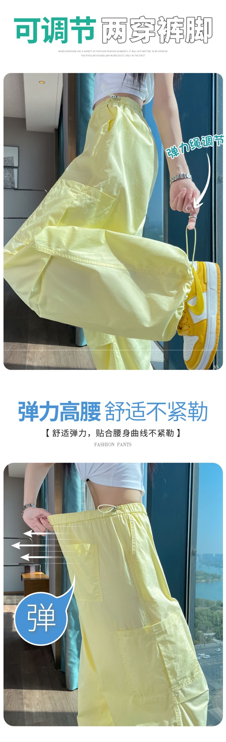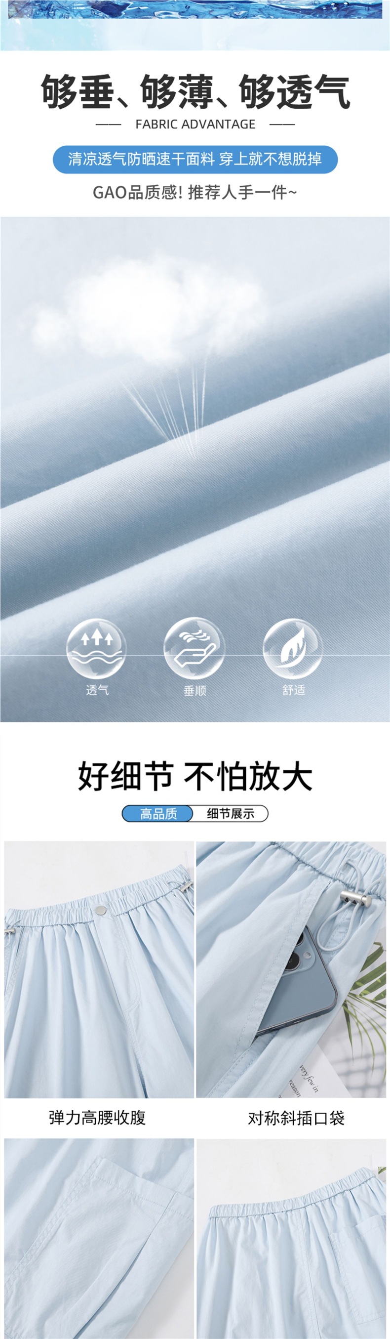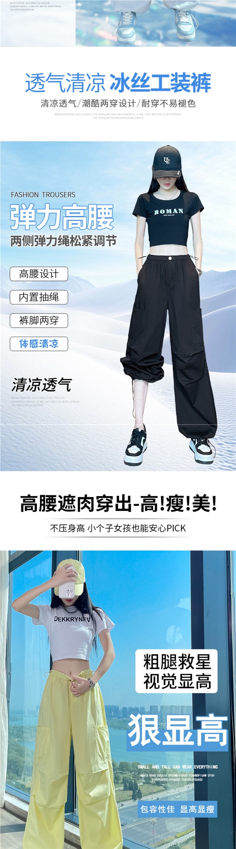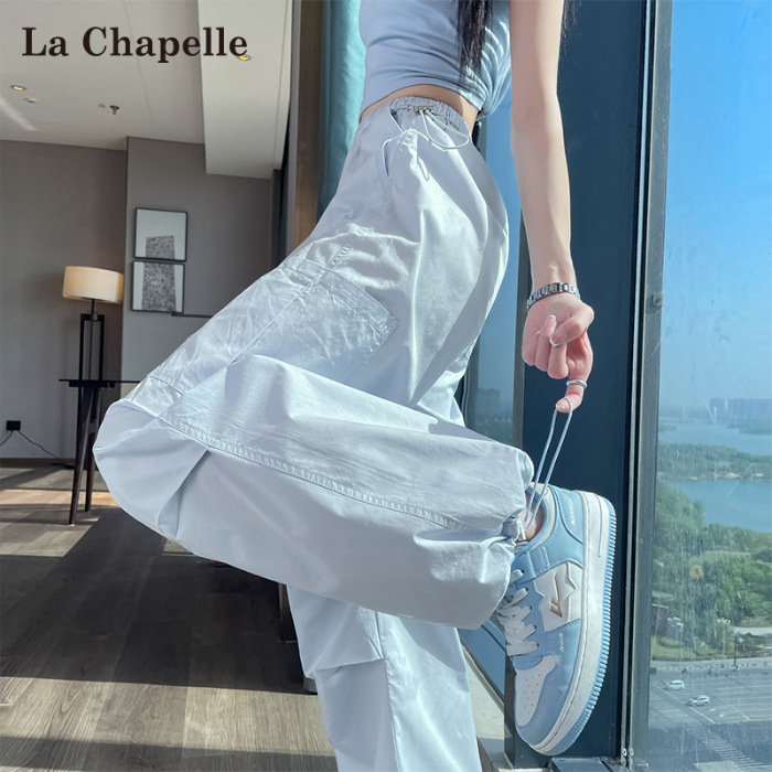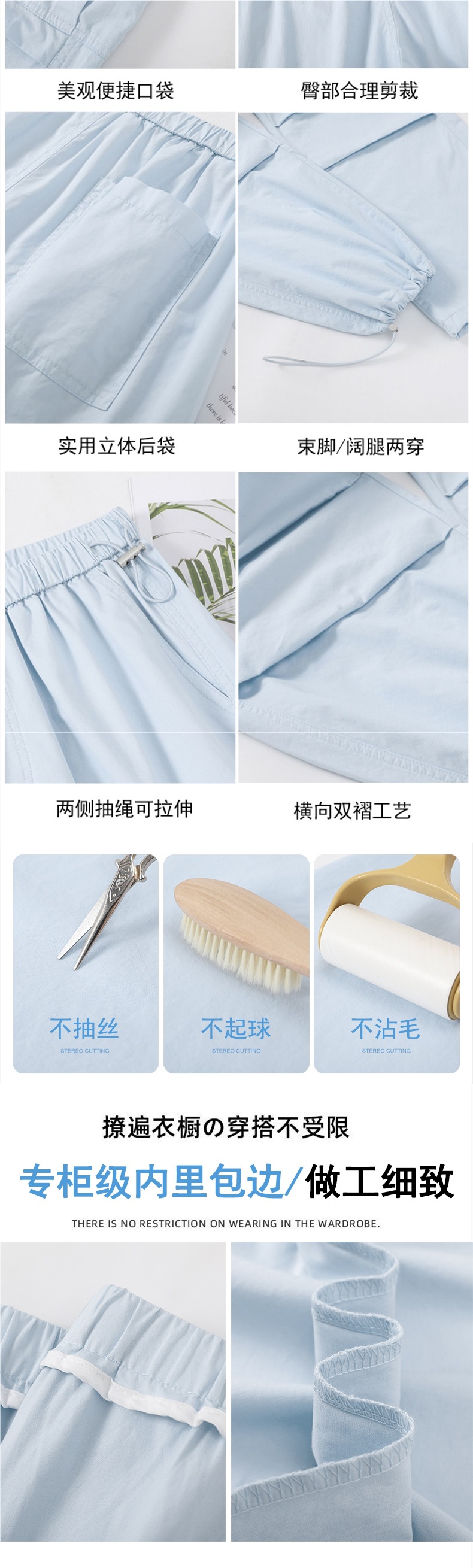 여성용 크로스보더 블루 속건성 작업복 여름 얇은 도파민 하이킹 바지 아이스 실크 스포츠 낙하산 바지 자외선 차단 바지스토어 가기