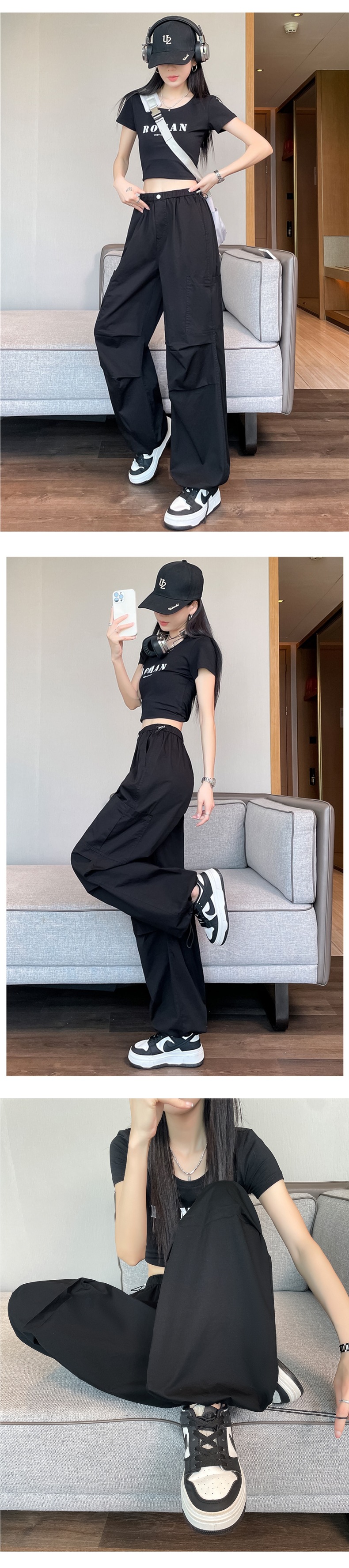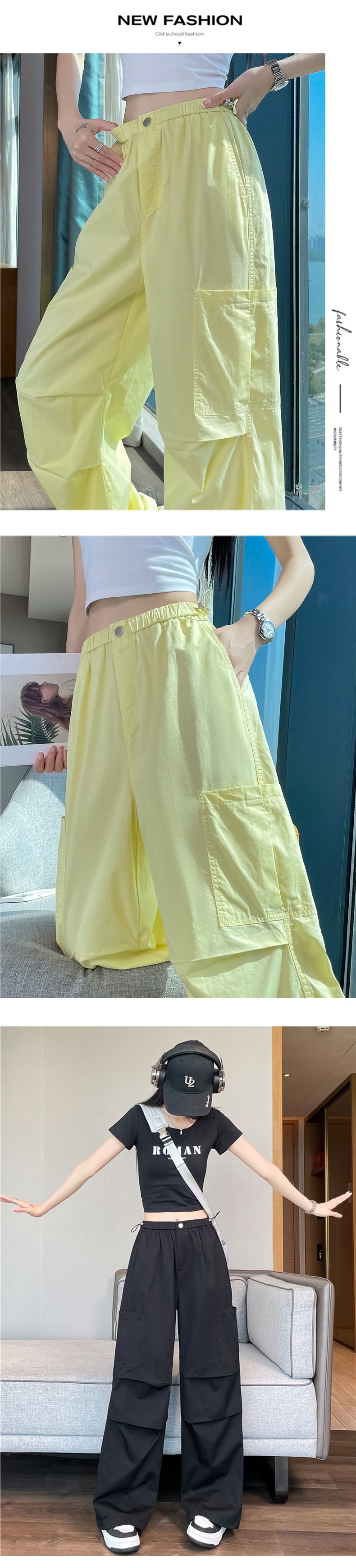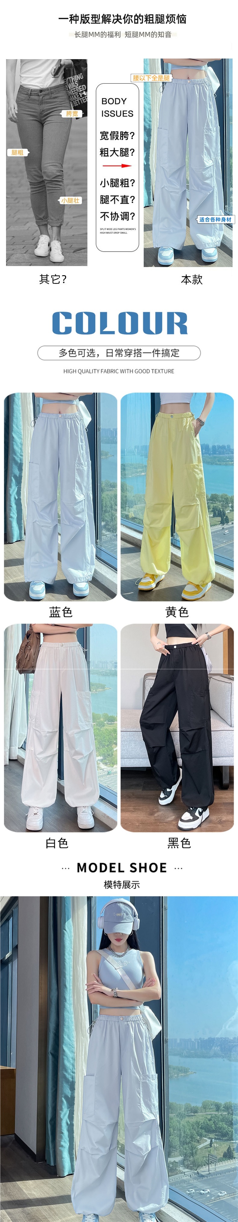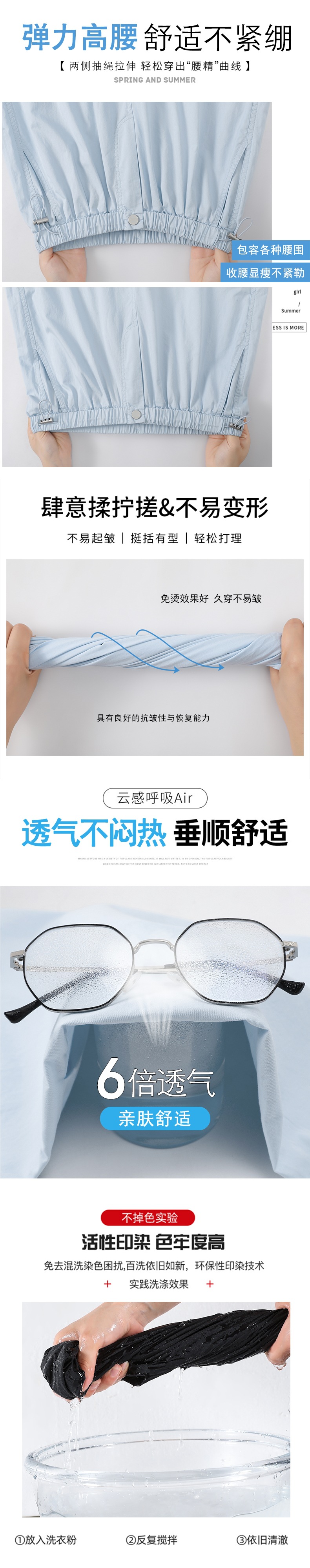 여성용 크로스보더 블루 속건성 작업복 여름 얇은 도파민 하이킹 바지 아이스 실크 스포츠 낙하산 바지 자외선 차단 바지스토어 가기