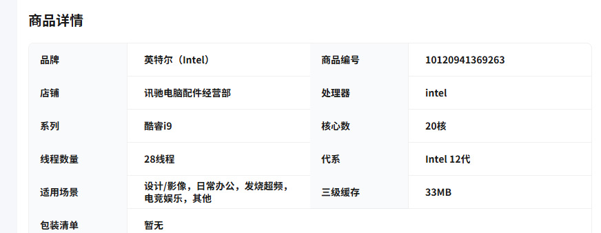 | 缓存 | L2 9.5MB + L3 20MB英特尔 | L2 28MB + L3 33MB英特尔 |