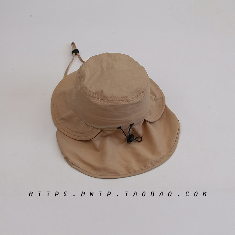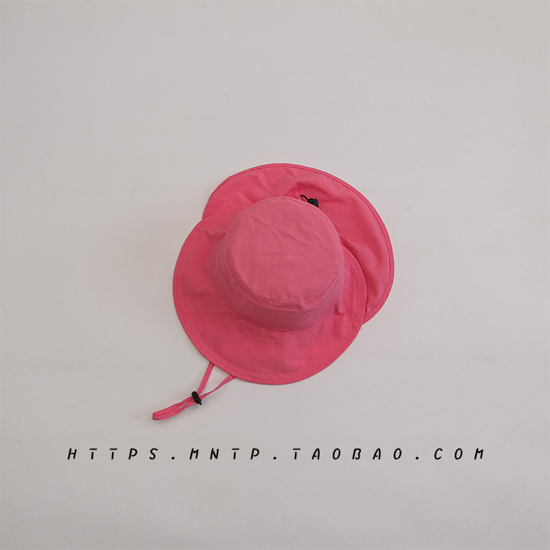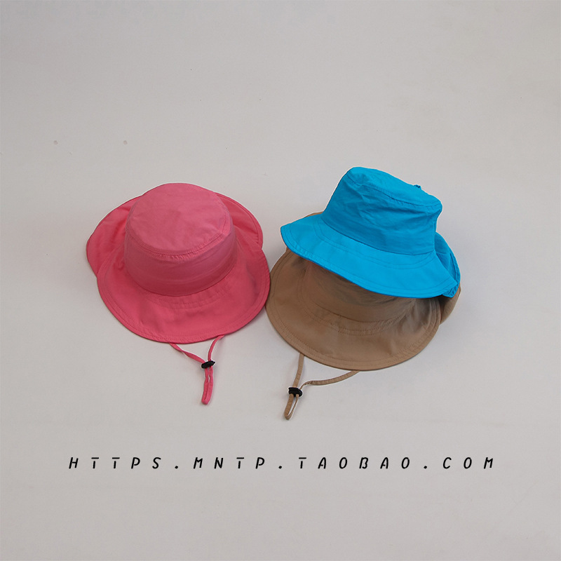 어린이 모자 여름 소년 태양 보호 어부 모자 아기 단색 더블 챙 여행 큰 챙 소녀 목도리 태양 모자