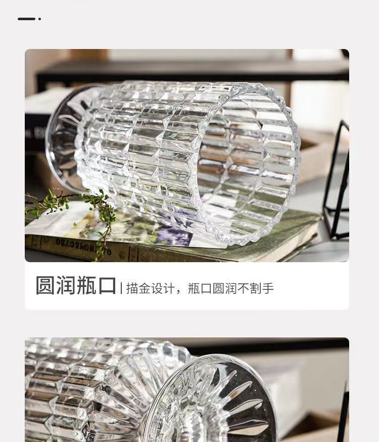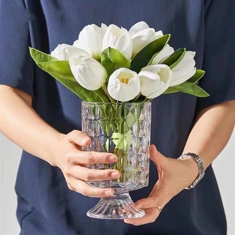 유리 높은 꽃병 장식품 거실 물에 심은 말린 꽃 꽃꽂이 북유럽 스타일 복고풍 투명 수경 용기 스타일