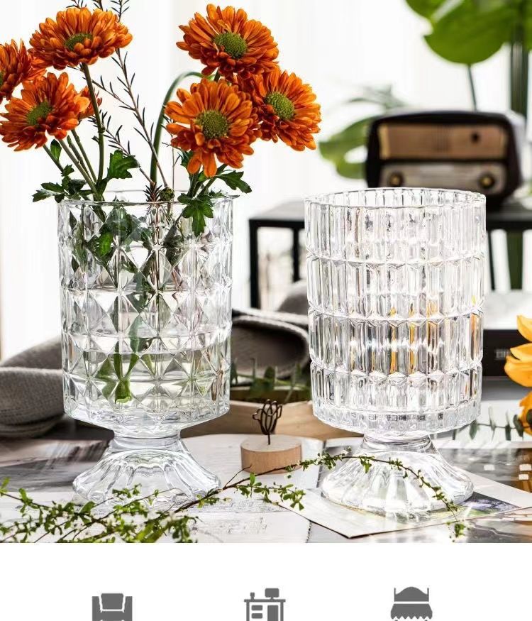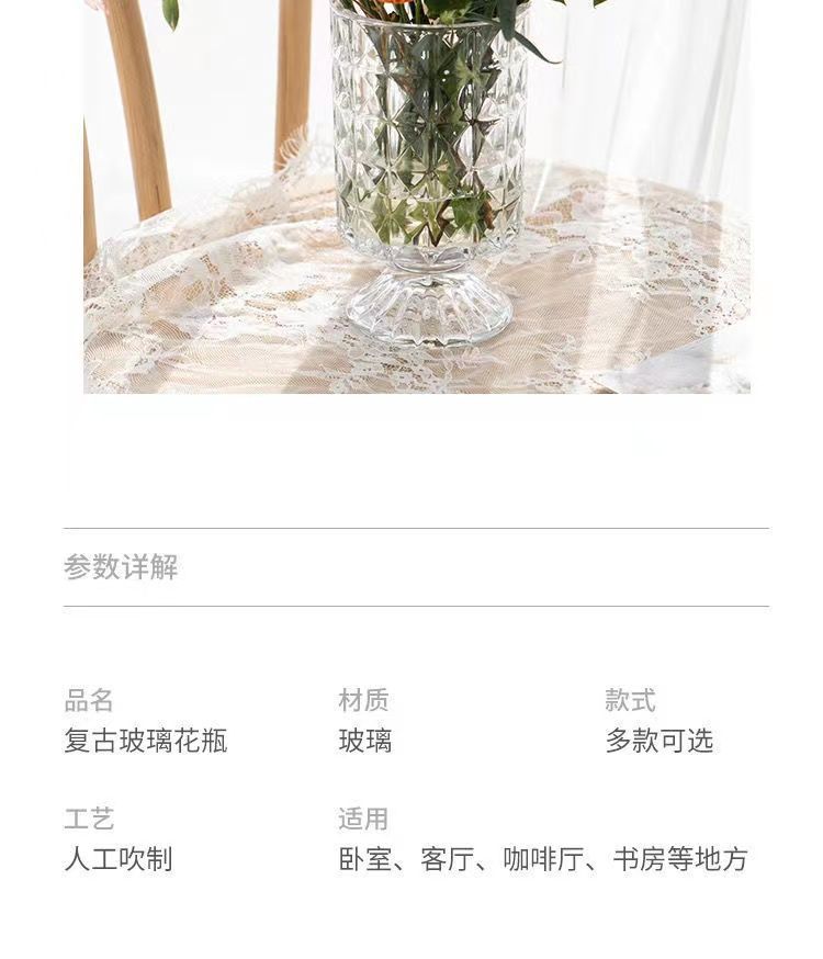 유리 높은 꽃병 장식품 거실 물에 심은 말린 꽃 꽃꽂이 북유럽 스타일 복고풍 투명 수경 용기 스타일스토어 가기