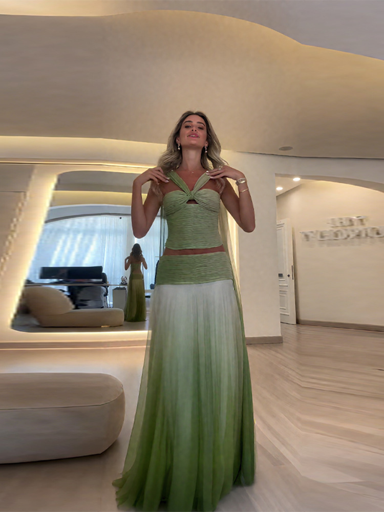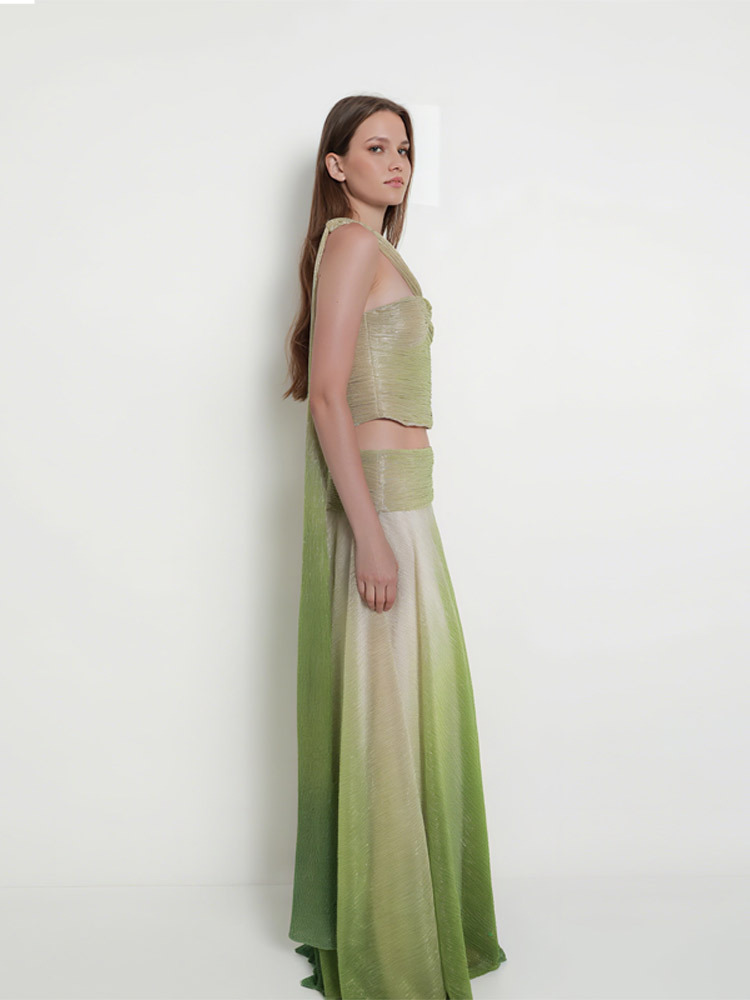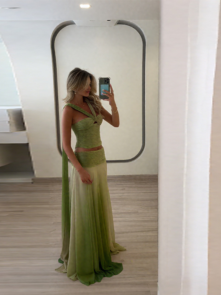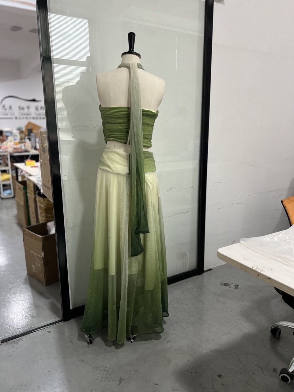 대외 무역 2025 여름 패션 새로운 스타일의 연예인 홀터넥 서스펜더 스커트 정장 그라데이션 느슨한 댄스 스커트