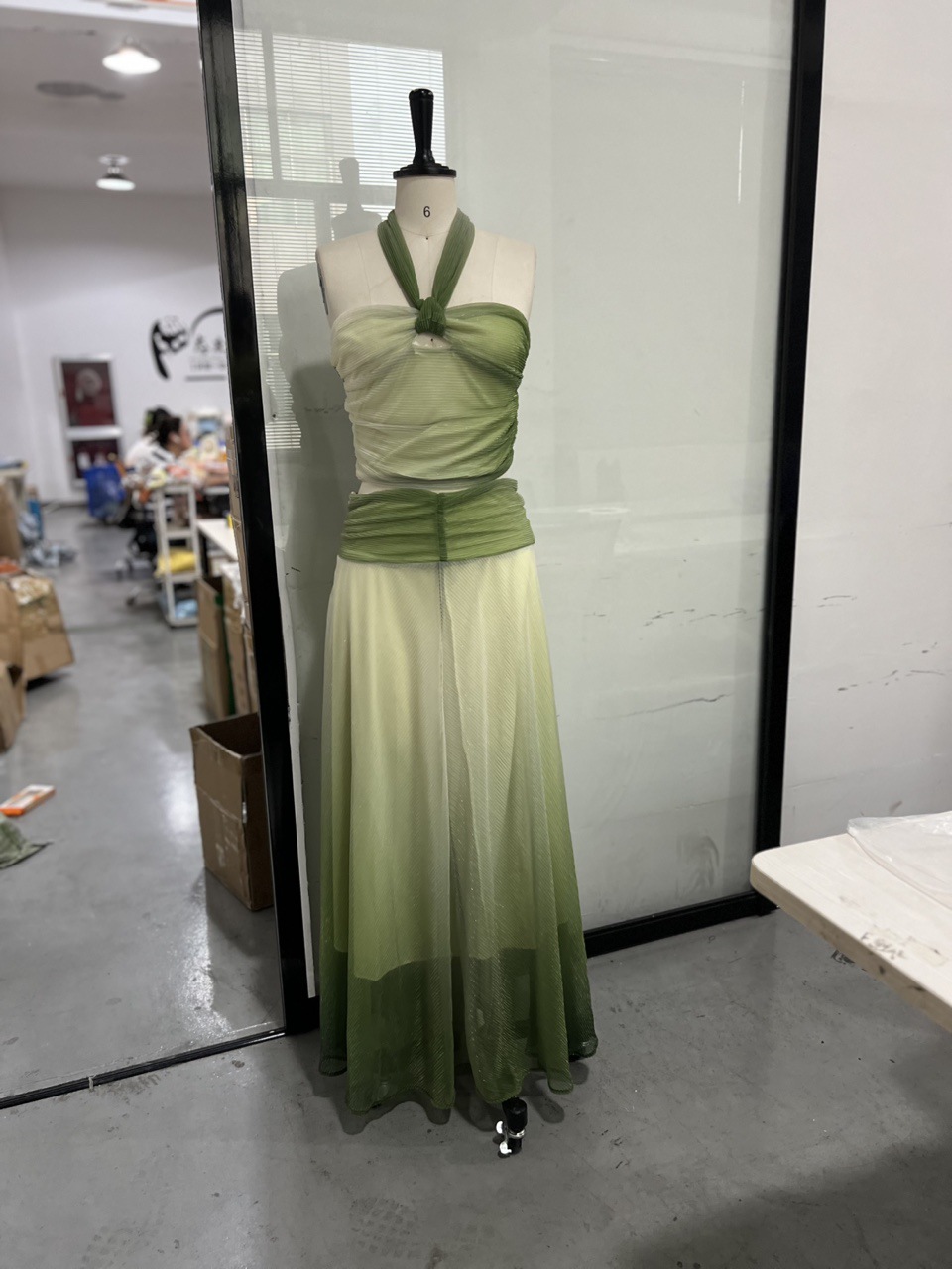 대외 무역 2025 여름 패션 새로운 스타일의 연예인 홀터넥 서스펜더 스커트 정장 그라데이션 느슨한 댄스 스커트스토어 가기