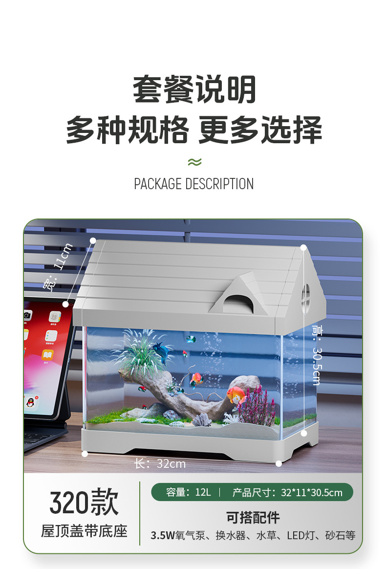 320 모델 지붕 커버 베이스 물고기 탱크 데스크탑 거실 물고기 탱크 홈 수족관 관상어 사육 탱크스토어 가기