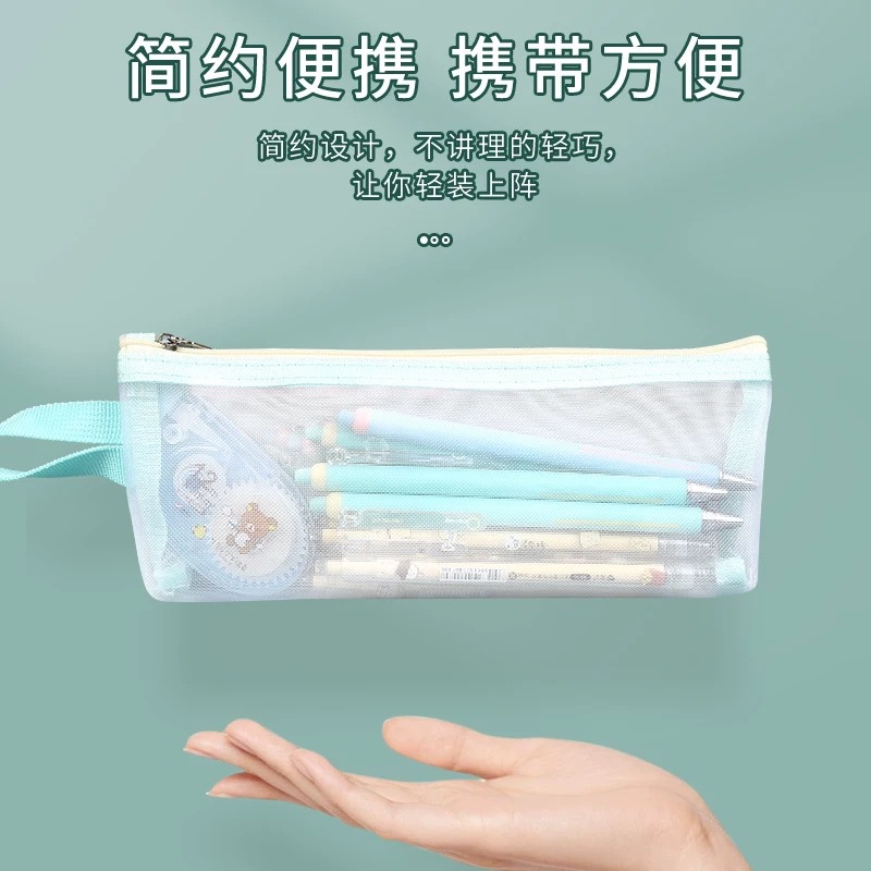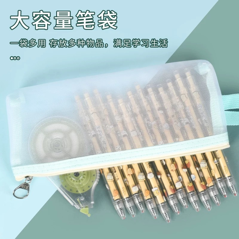 입체 대용량 학생 문구 가방 투명 메쉬 연필 가방 고급스러운 일본식 간단한 연필 가방