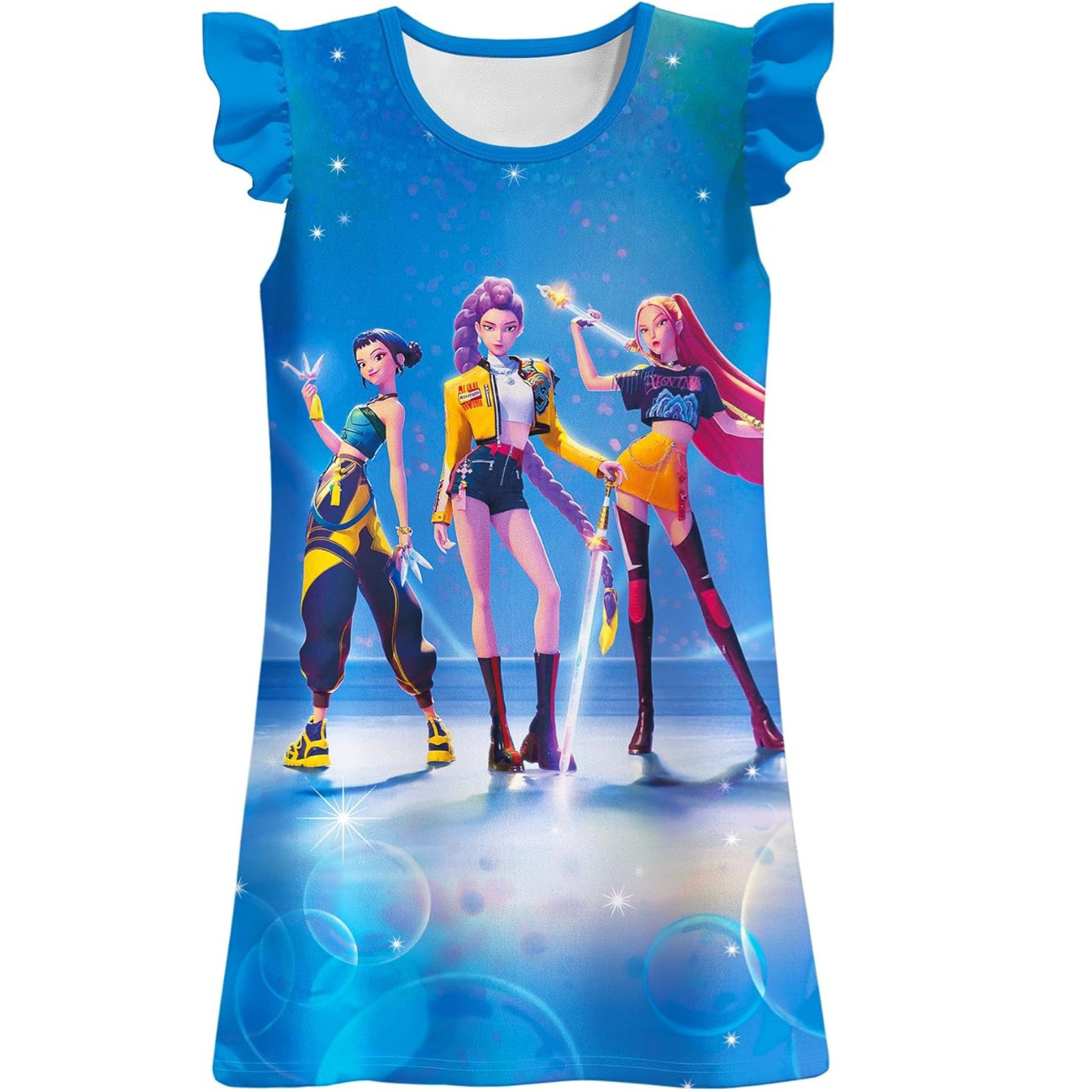 110-150 Kpop Hunter Witch Girl Fly Fly Sleeve Nightdress 캐주얼 홈 드레스 외출복스토어 가기