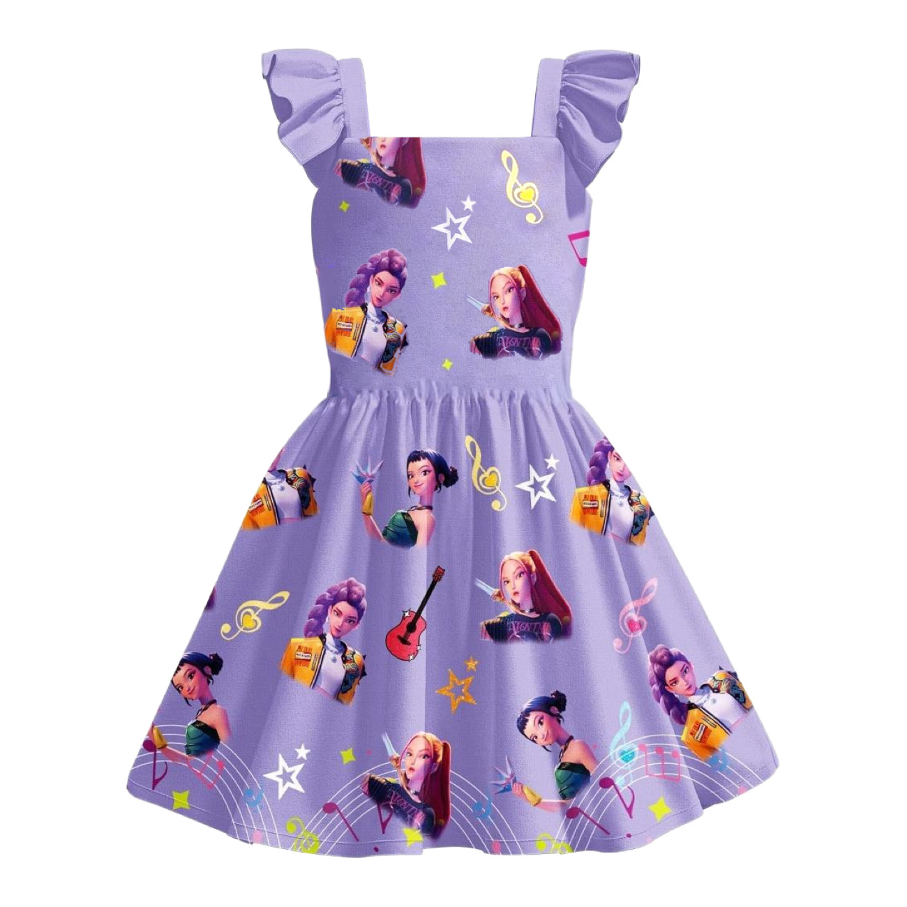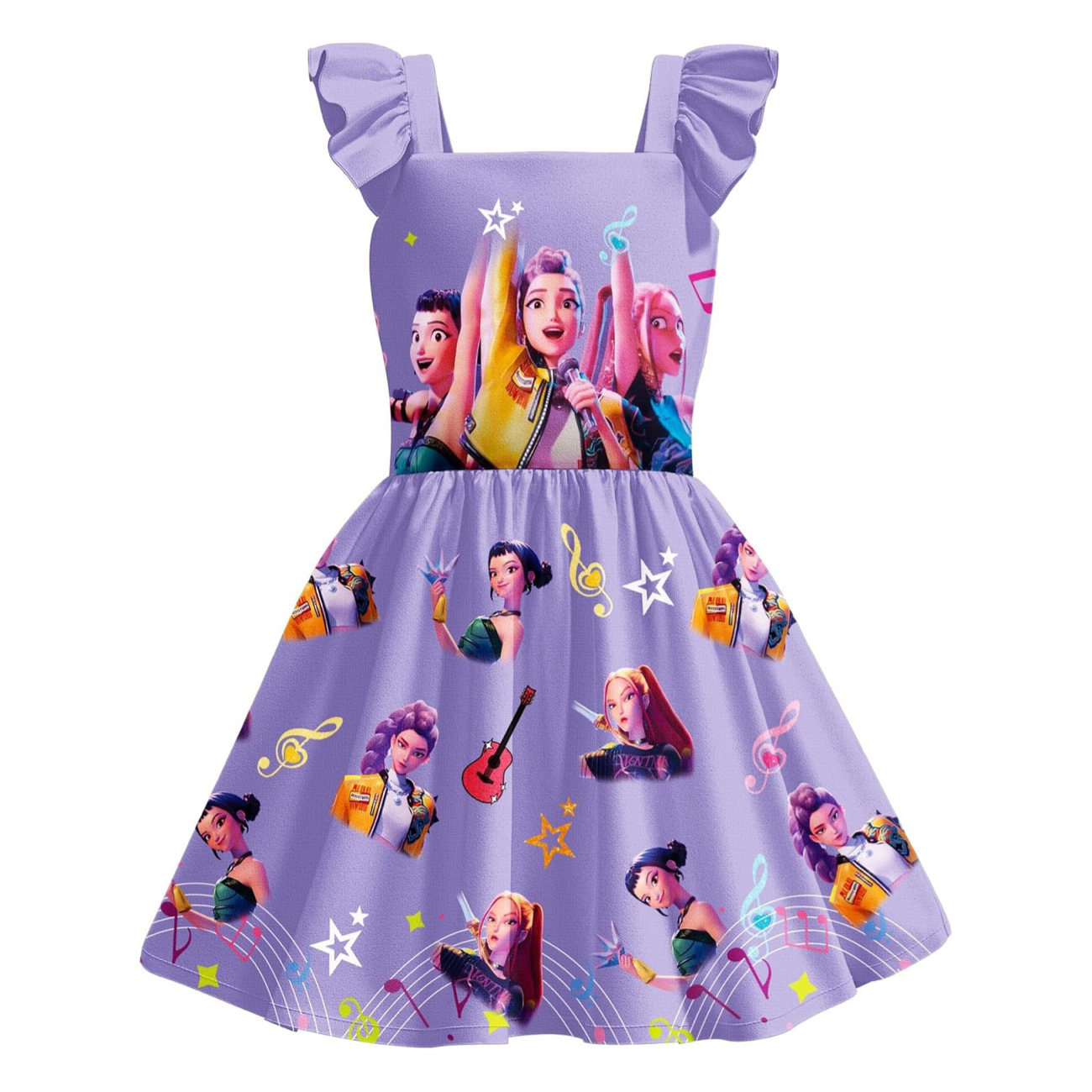110-150 Kpop Hunter Witch Girl Fly Fly Sleeve Nightdress 캐주얼 홈 드레스 외출복