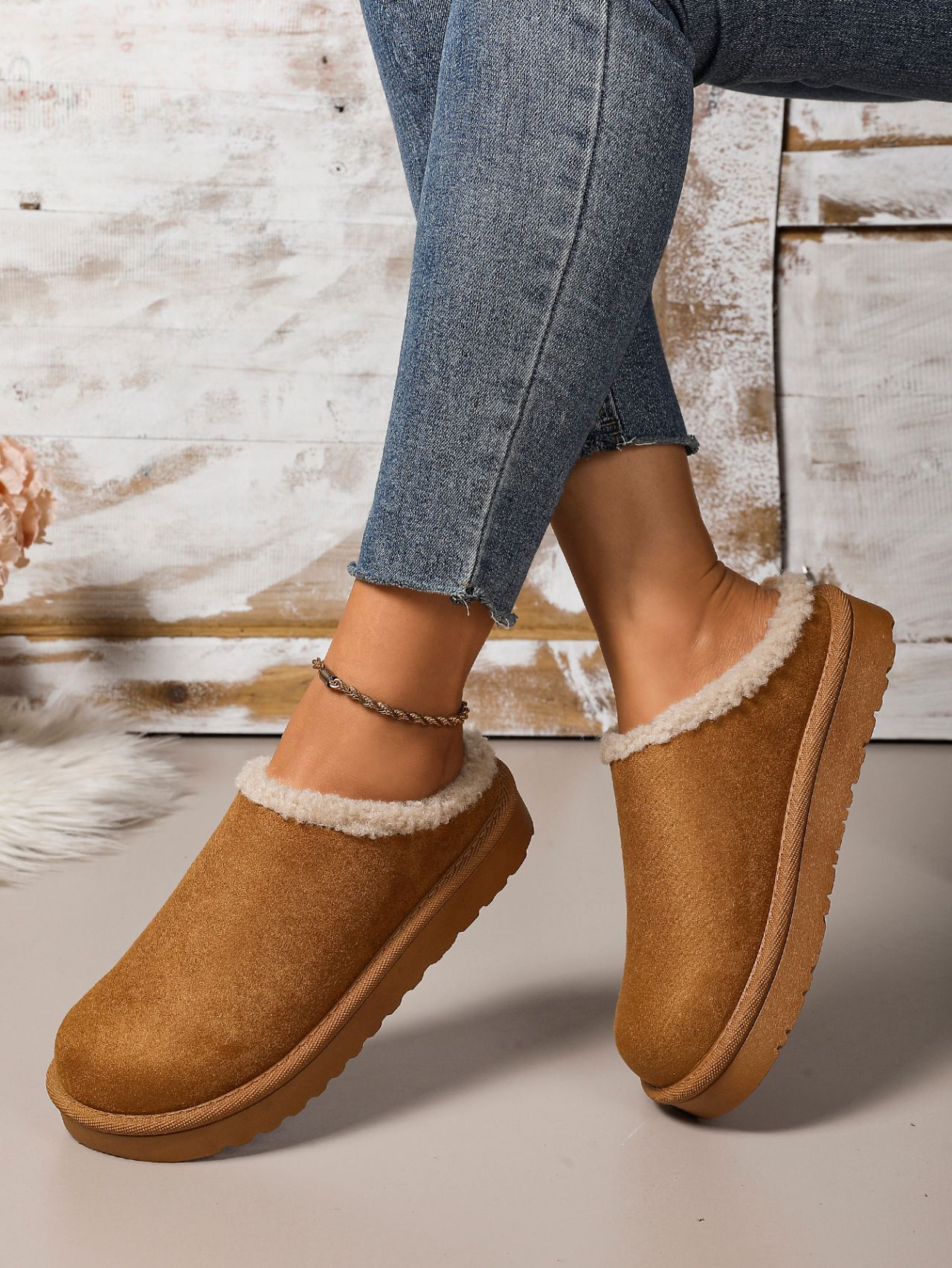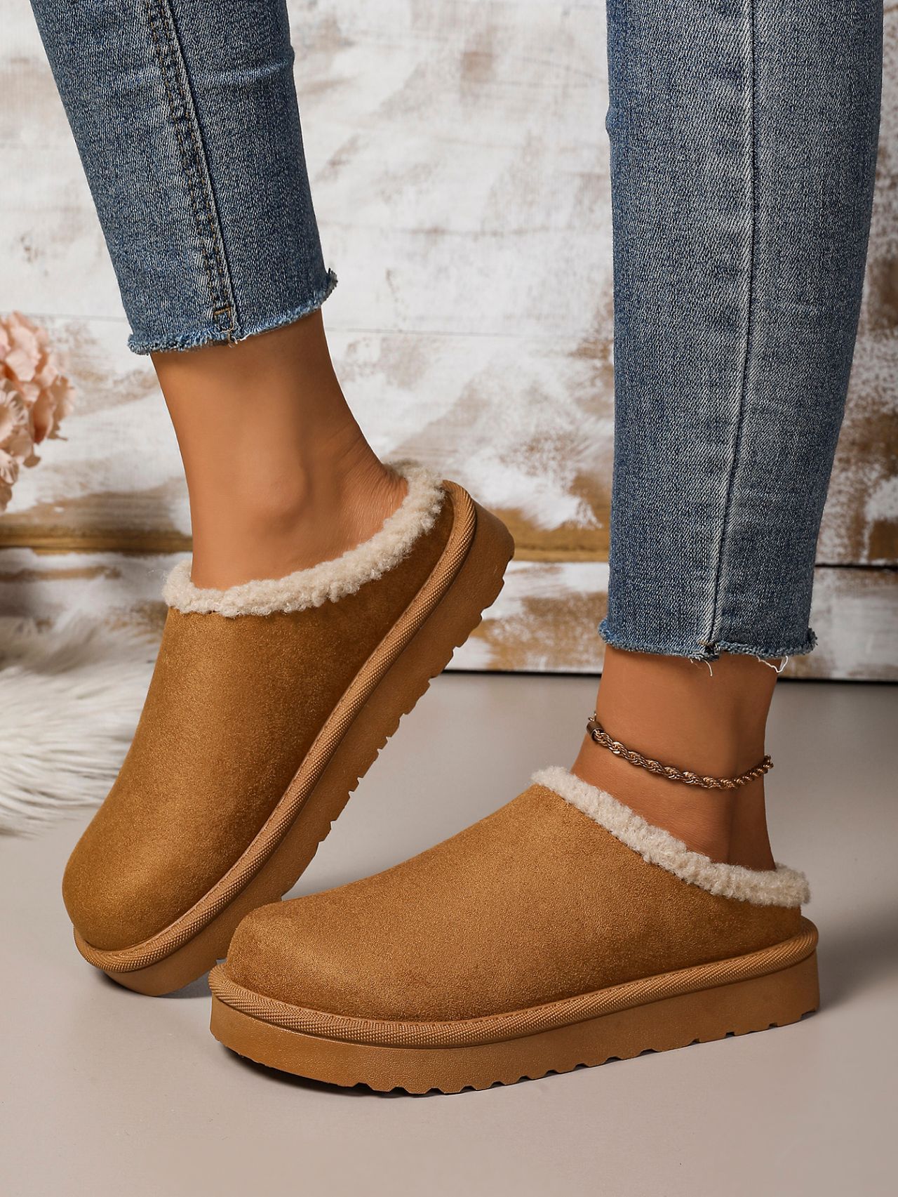 대외 무역 복고풍 스타일 모피 슬리퍼 Baotou 하프 슬리퍼 여성 2025 새로운 플랫 여성 벨벳 스노우 부츠 여성 신발