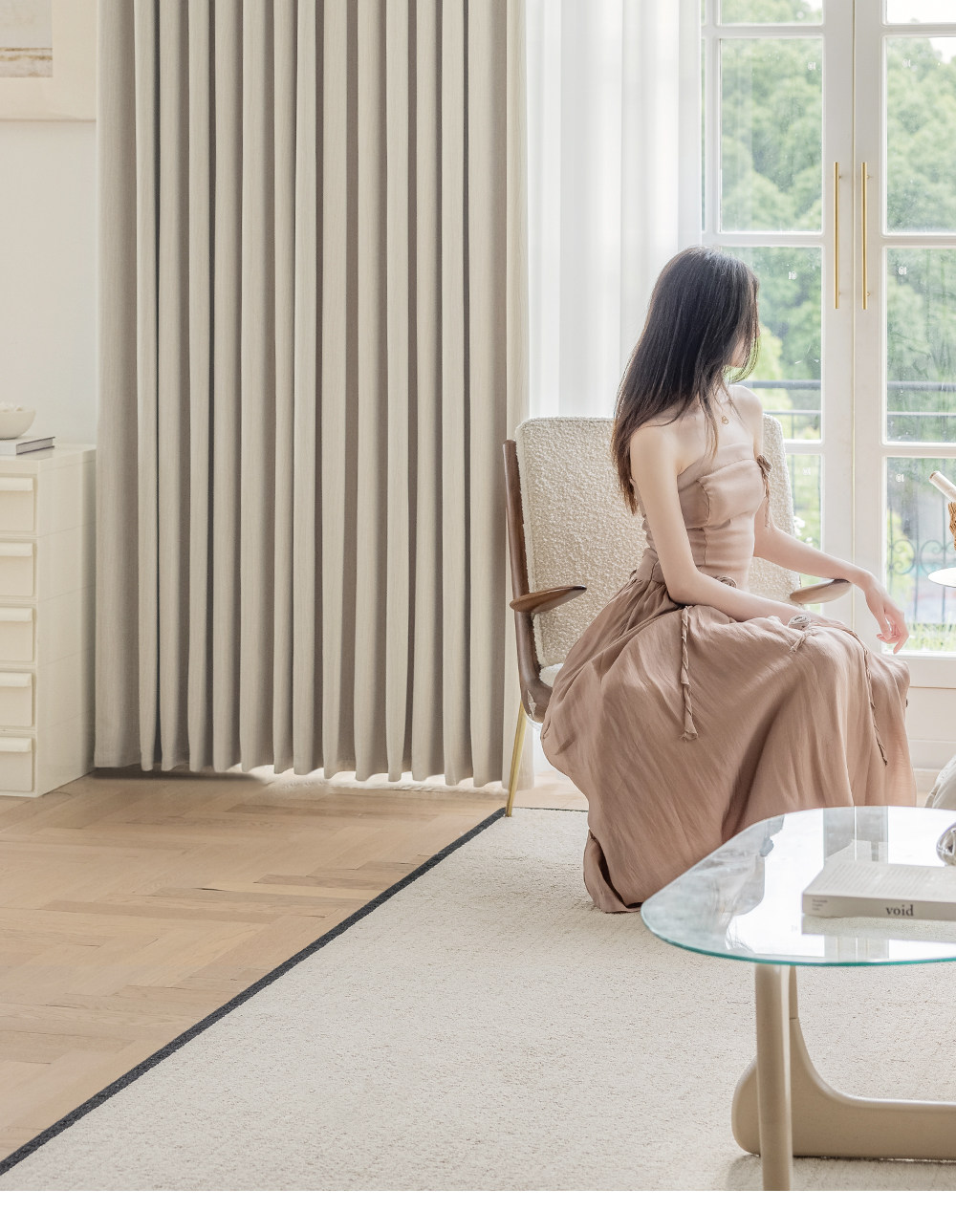 • Yiyun Velvet-Light Chestnut Almond [한국어 할인 모델] 적용 트랙 길이 1.36- 1.5m [커튼 폭 1.5*높이 2.7m ] 2개