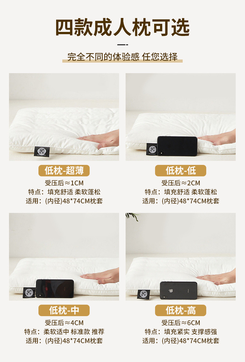 면 낮은 베개, 얇은 성인 가정용 베개 코어, 편안한 낮은 베개, 면 베개 코어, 순면 어린이 베개 코어