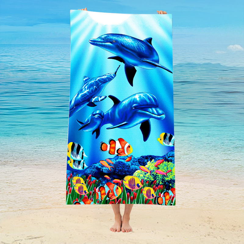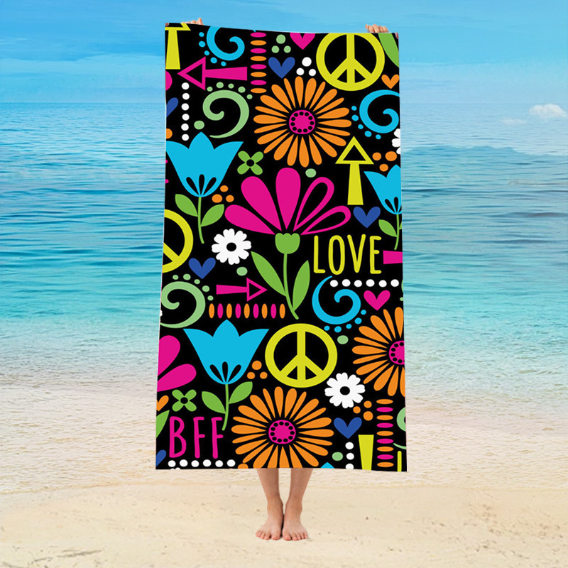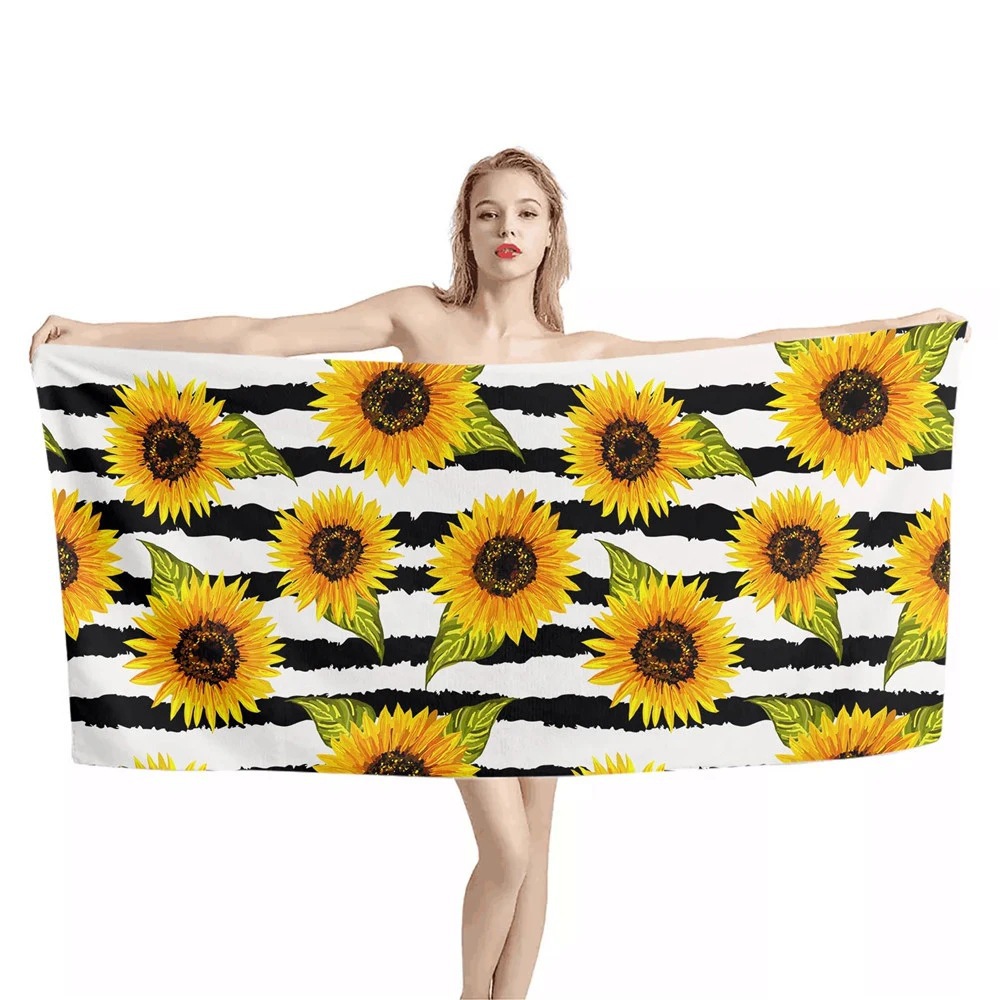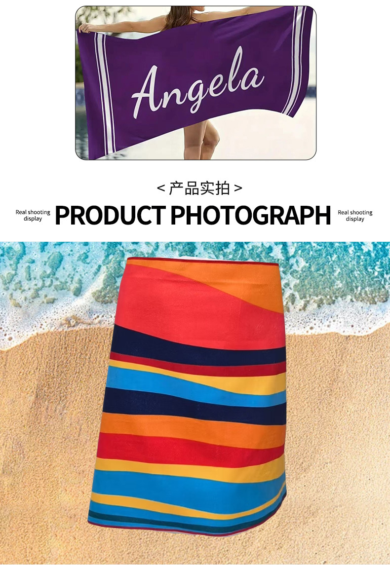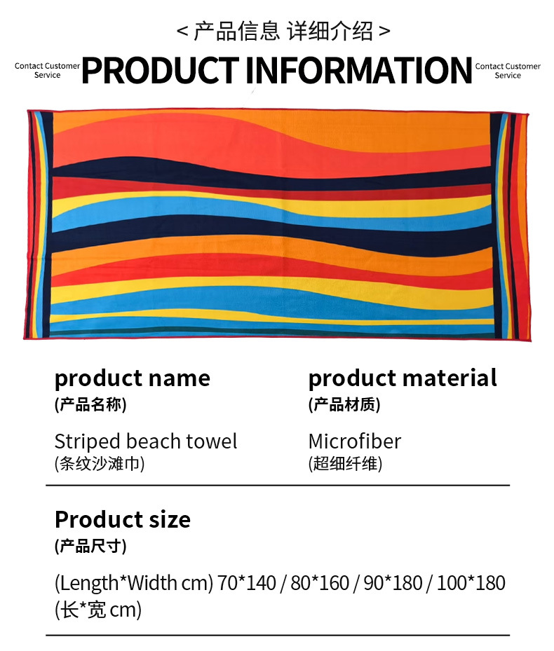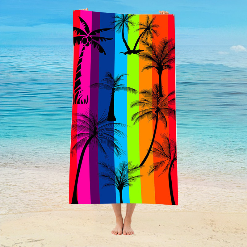 TEMU Xiyin 국경 간 인기 두꺼운 흡수성 속건성 무지개 줄무늬 마이크로 화이버 비치 타월 목욕 타월 도매