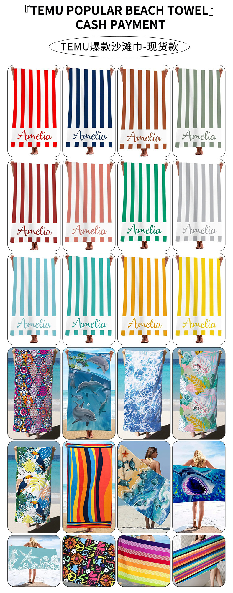 TEMU Xiyin 국경 간 인기 두꺼운 흡수성 속건성 무지개 줄무늬 마이크로 화이버 비치 타월 목욕 타월 도매스토어 가기
