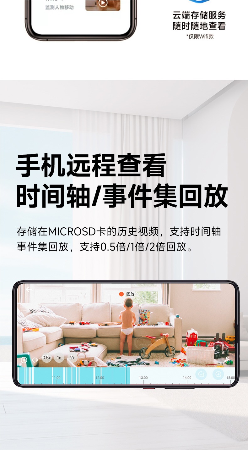 • 15일간 연중무휴 녹화 - 4G 울트라 클리어 버전[360°파노라마 + 양방향 음성 + 지능형 휴머노이드 감지] - 망원(감시 거리 15- 30m )