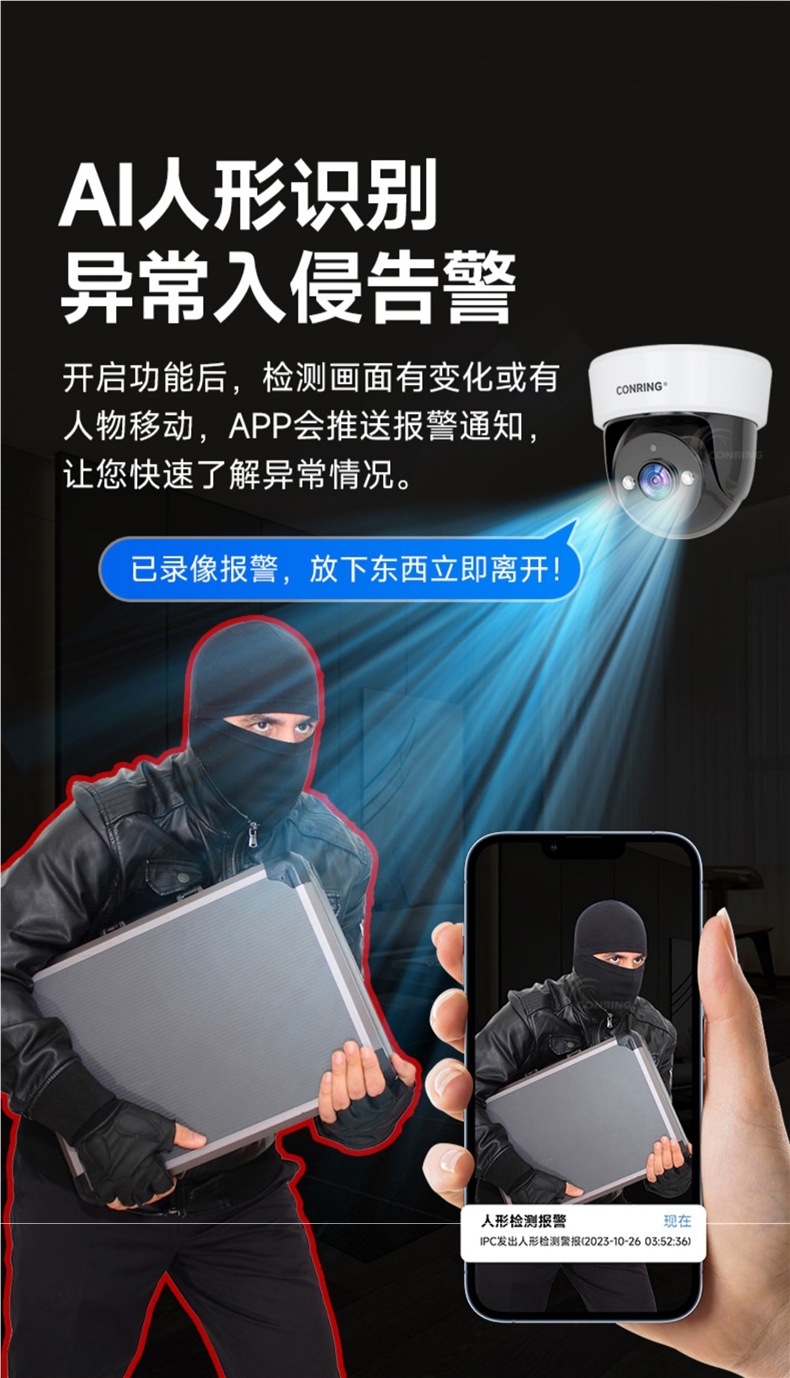 • 15일 종일 루프 녹화 - WIFI 울트라 클리어 버전 [360°파노라마 + 양방향 음성 + 지능형 휴머노이드 감지] - 망원(감시 거리 15-30