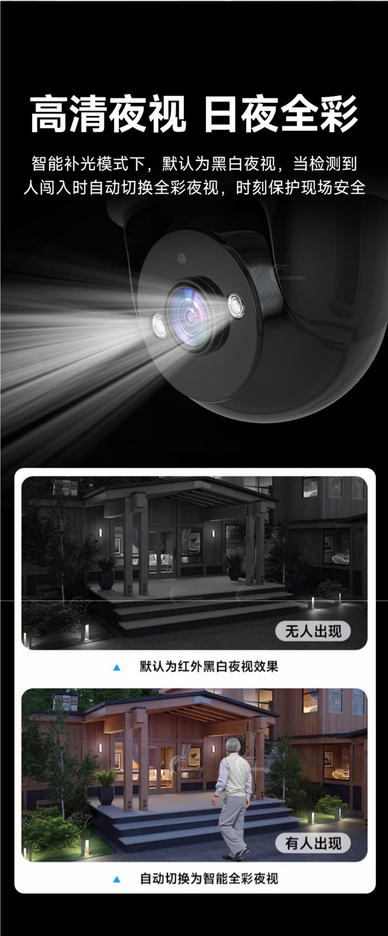 • 15일간 연중무휴 녹화 - 4G 울트라 클리어 버전[360°파노라마 + 양방향 음성 + 지능형 휴머노이드 감지] - 광각(감시 거리 3- 8m )-4