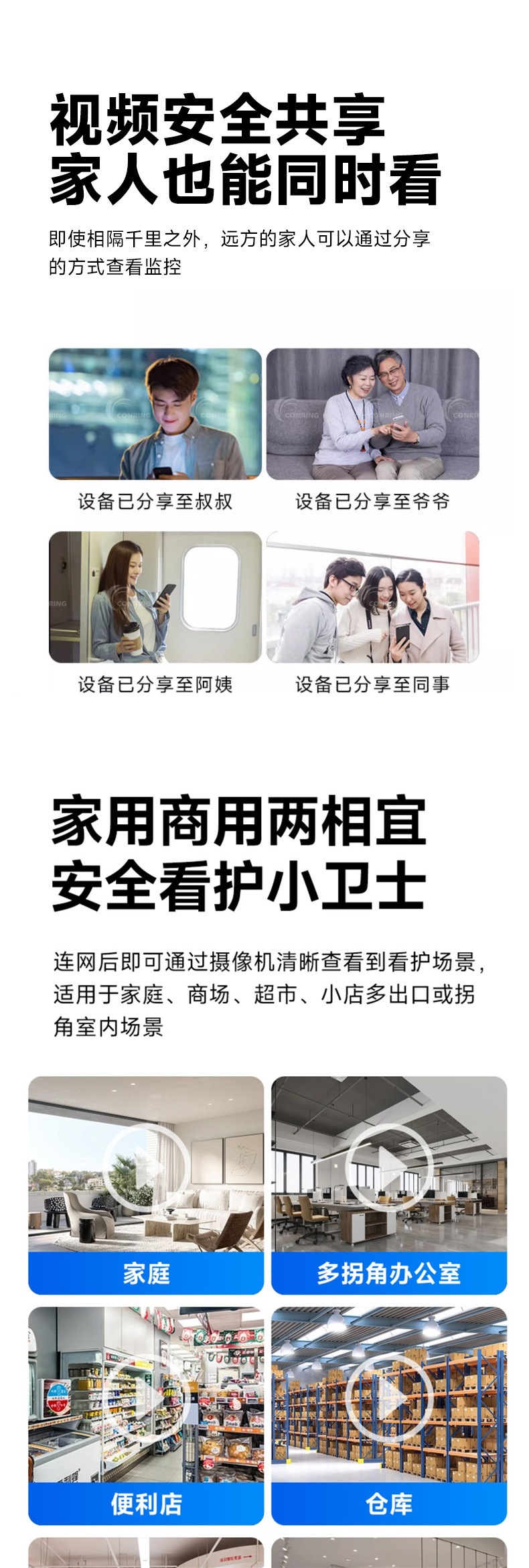 • 15일간 연중무휴 녹화 - 4G 울트라 클리어 버전[360°파노라마 + 양방향 음성 + 지능형 휴머노이드 감지] - 광각(감시 거리 3- 8m )-3