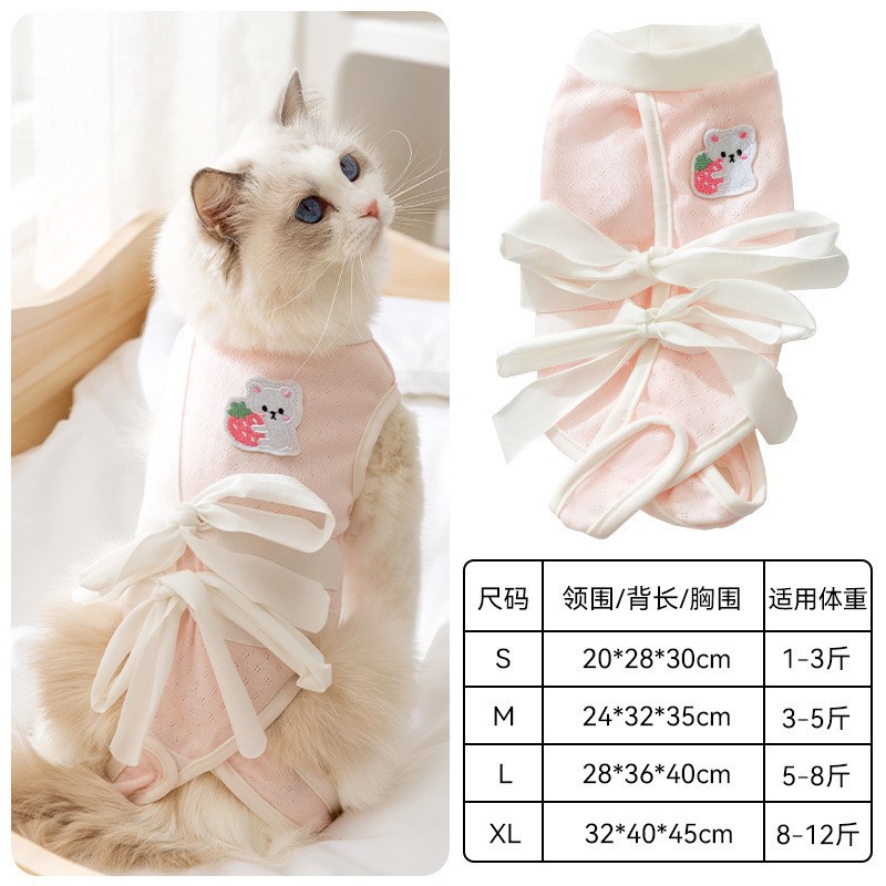 사계절 핥힘 방지 불활성화복, 수술복, 암컷 고양이 이유식복, 고양이 얇은 고양이옷, 애완고양이와 강아지 네발스토어 가기