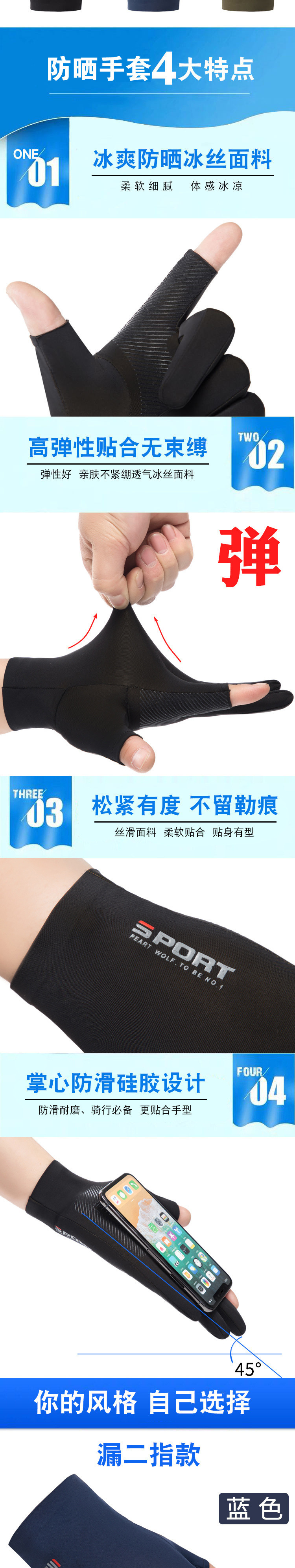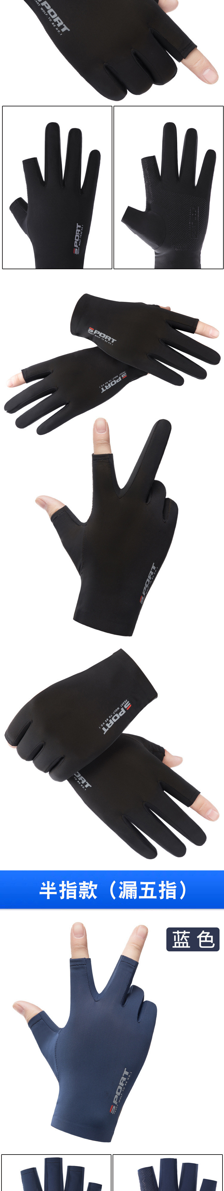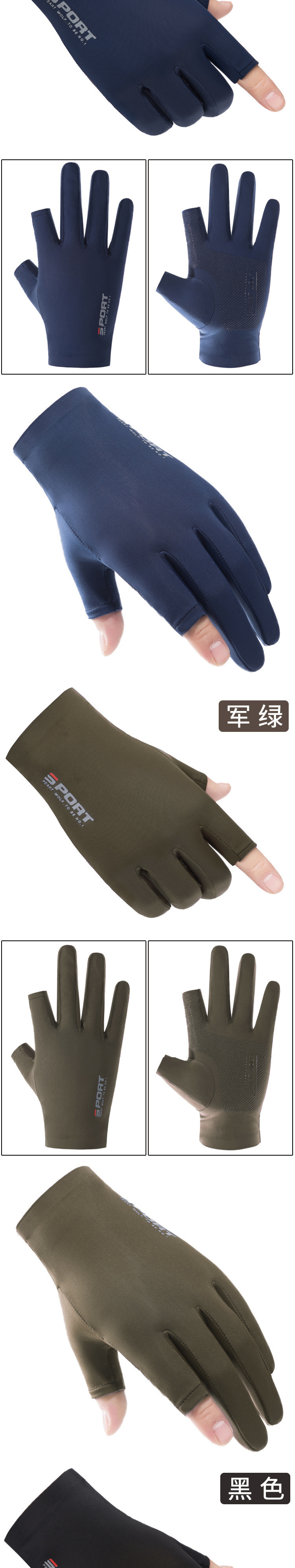 남성용 및 여성용 자외선 차단 반 손가락 장갑, 미끄럼 방지 여름용 얇은 얼음 실크 반 손가락 운전, 사이클링 및 낚시용 장갑