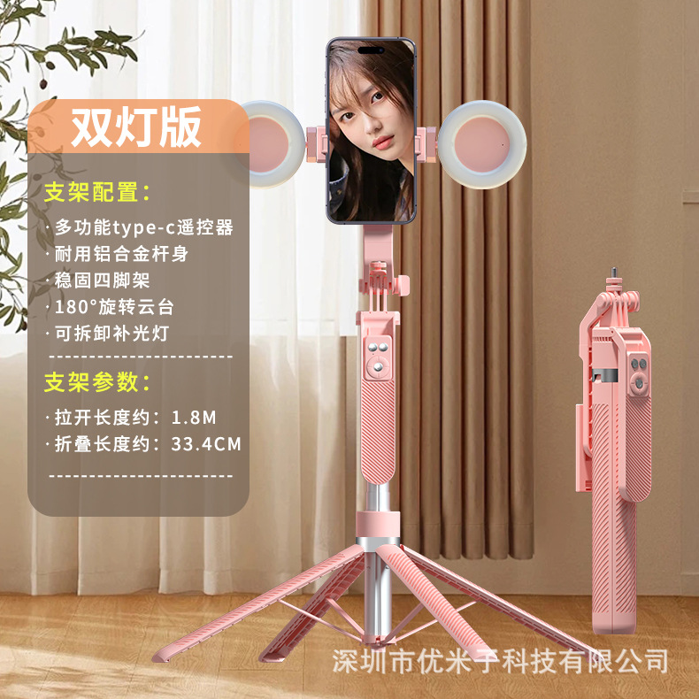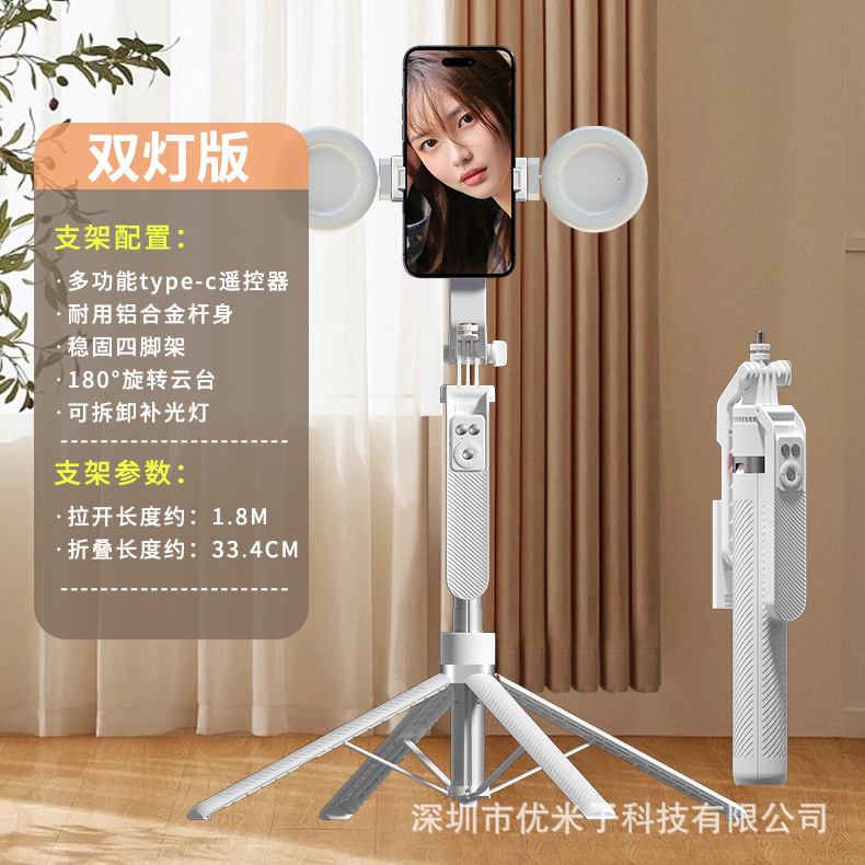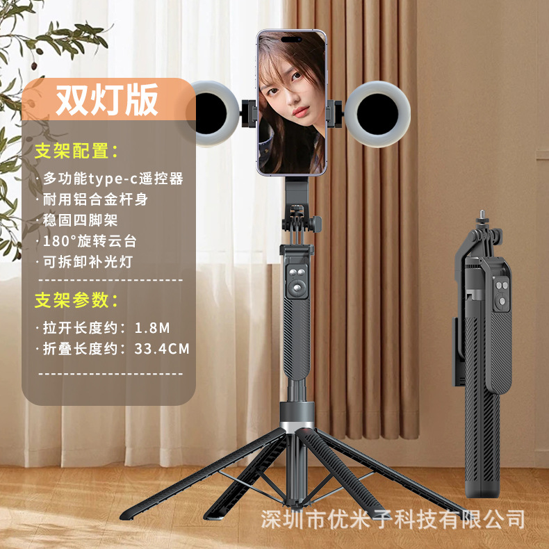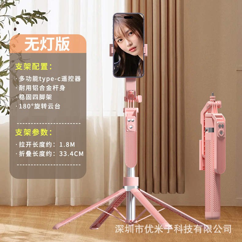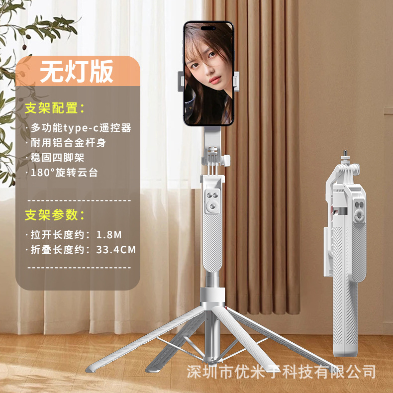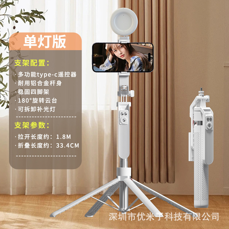 업그레이드된 블루투스 휴대폰 셀카봉 Douyin 라이브 방송 알루미늄 합금 4개의 다리가 뷰티 필 라이트 1.8m 스탠드를 지원합니다.