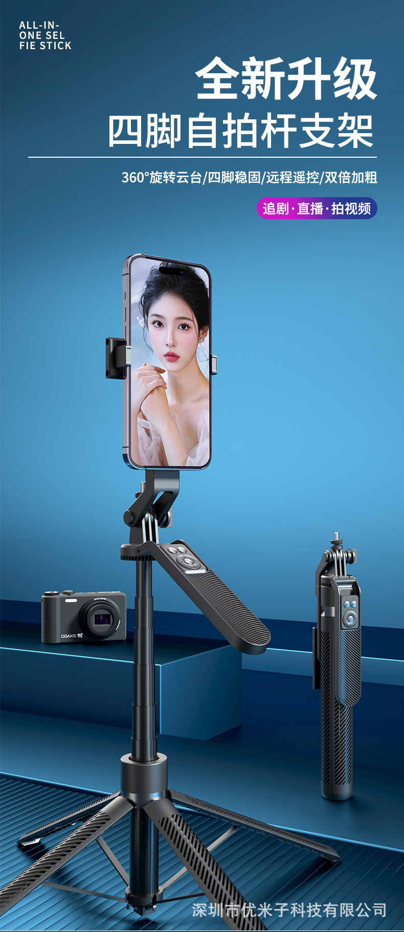 업그레이드된 블루투스 휴대폰 셀카봉 Douyin 라이브 방송 알루미늄 합금 4개의 다리가 뷰티 필 라이트 1.8m 스탠드를 지원합니다.스토어 가기