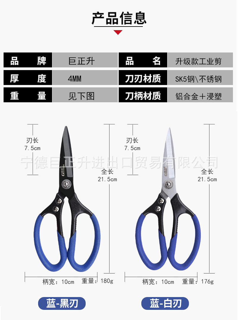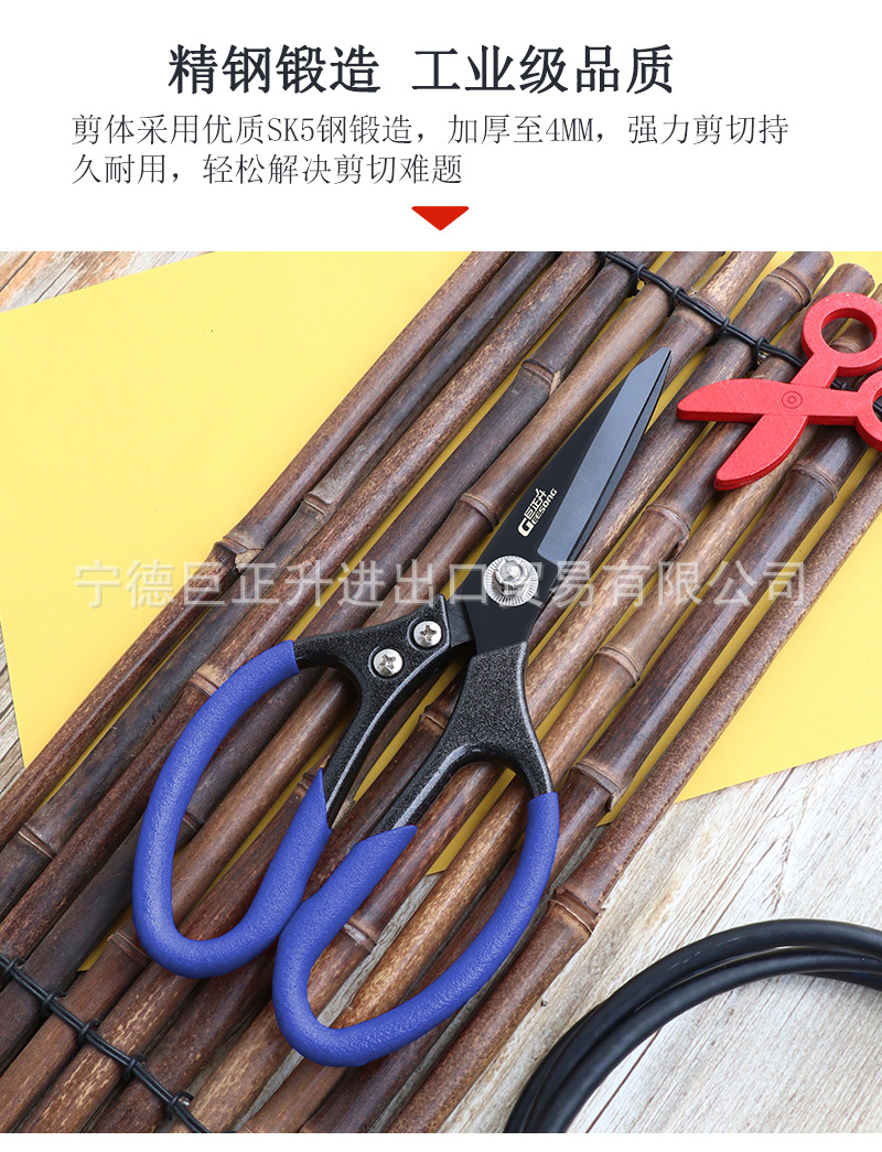 • 튼튼한 산업용 가위 - 파란색 손잡이와 검은색 칼날