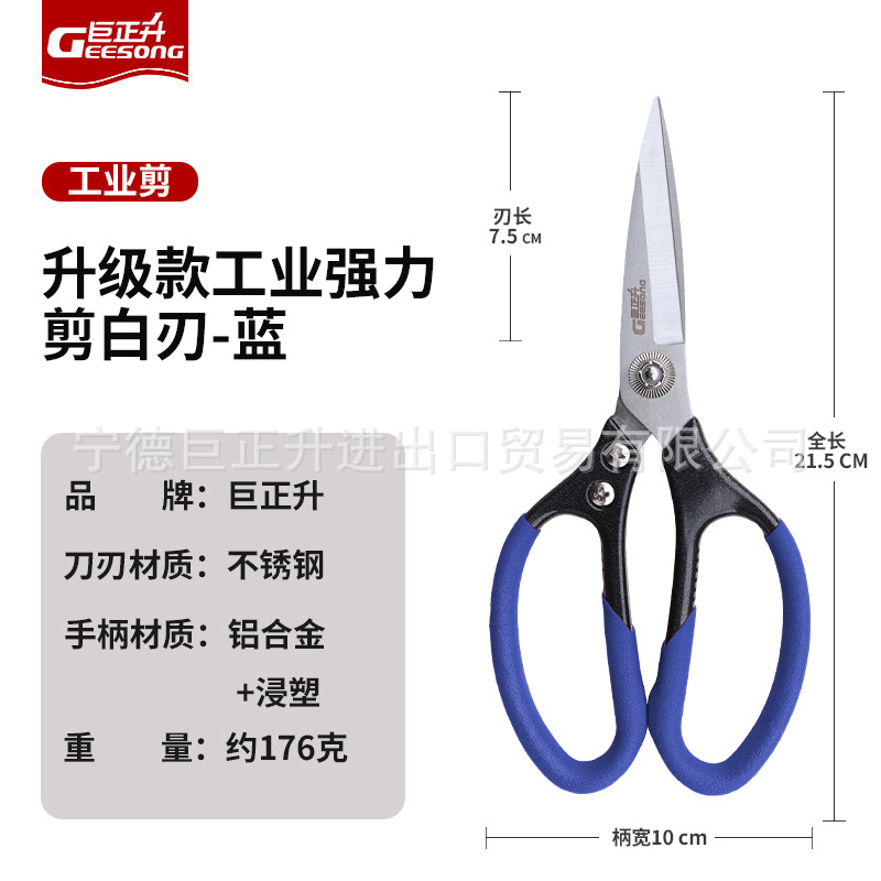 • 튼튼한 산업용 가위 - 파란색 손잡이와 흰색 칼날