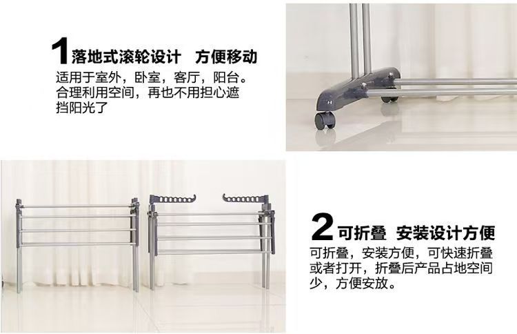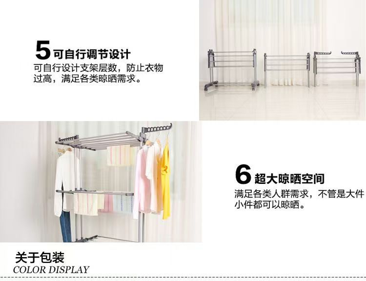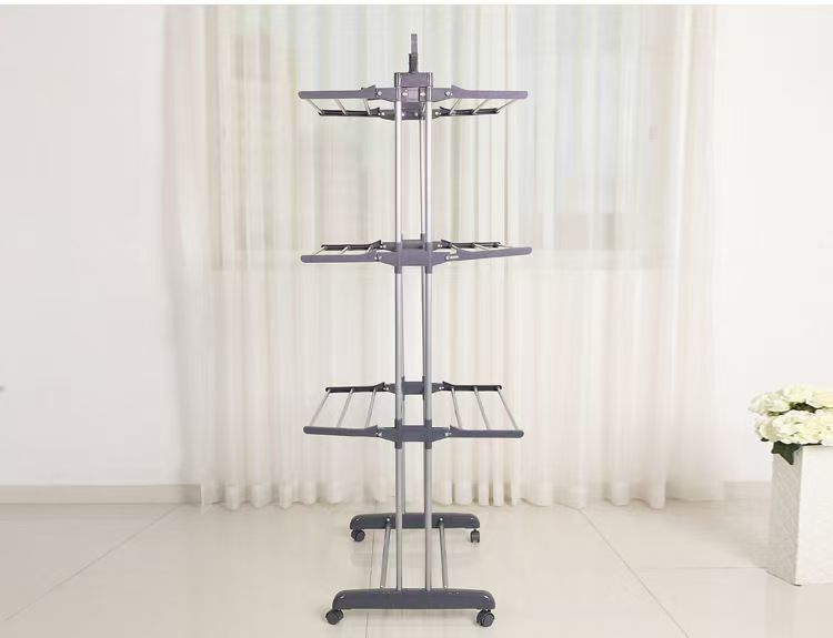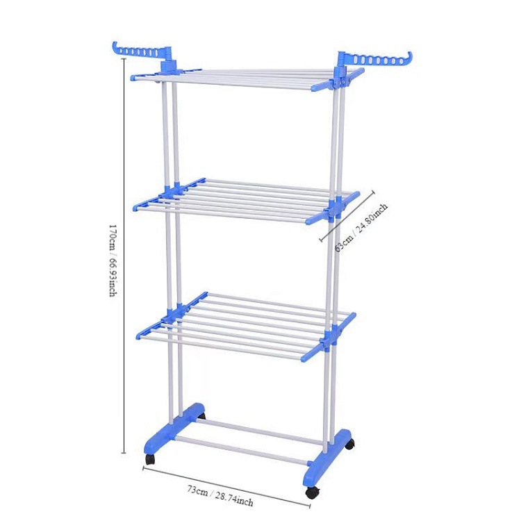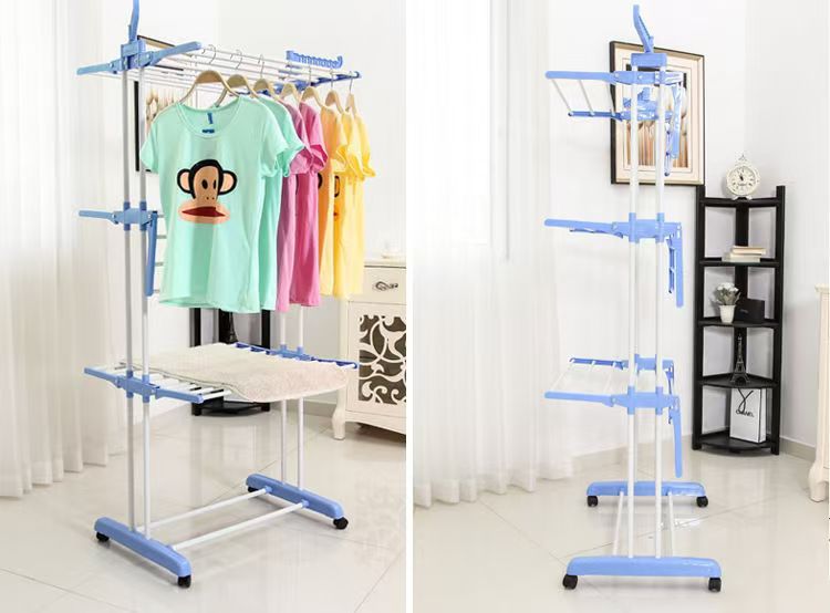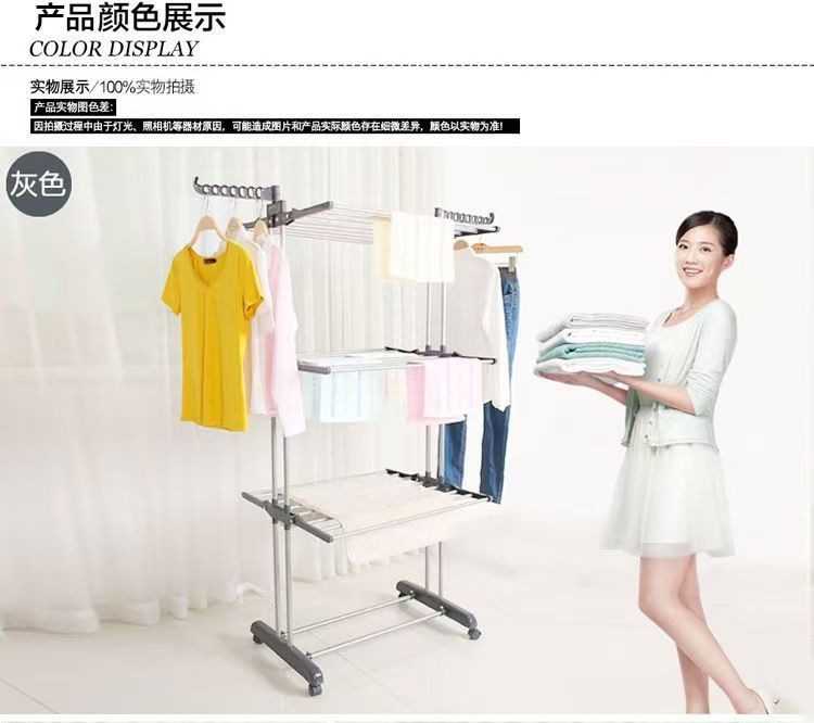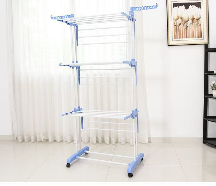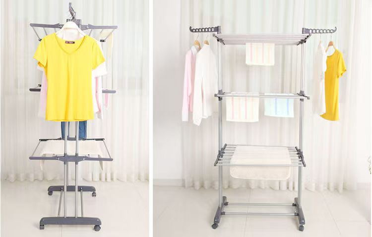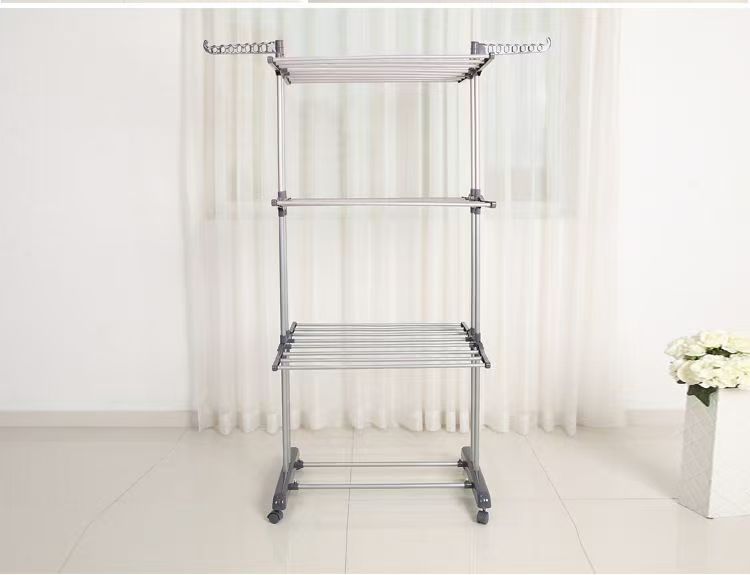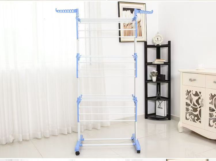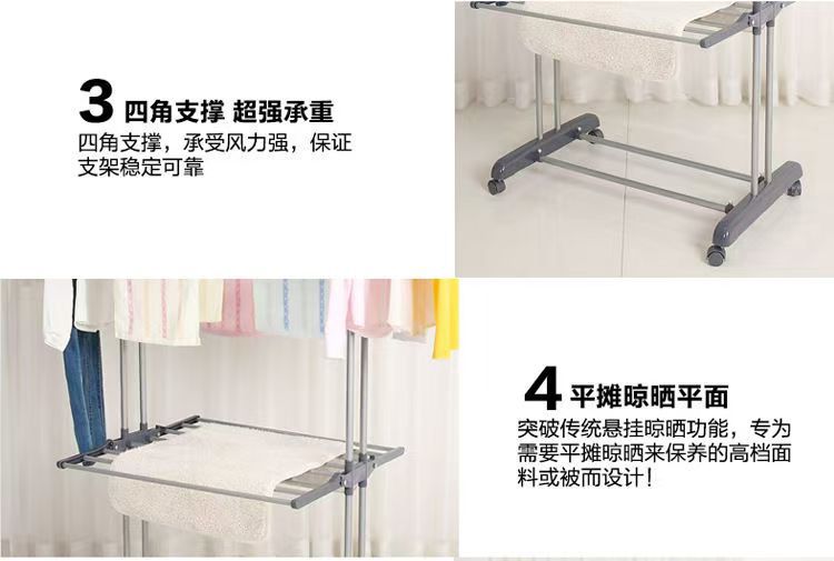 다기능 3층 수건걸이 건조대 다층 이동식 바닥 접이식 이중봉 건조대 옷걸이 수납선반