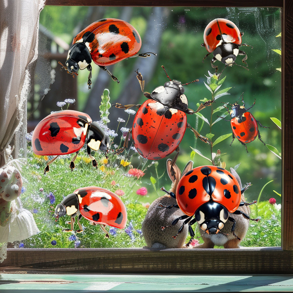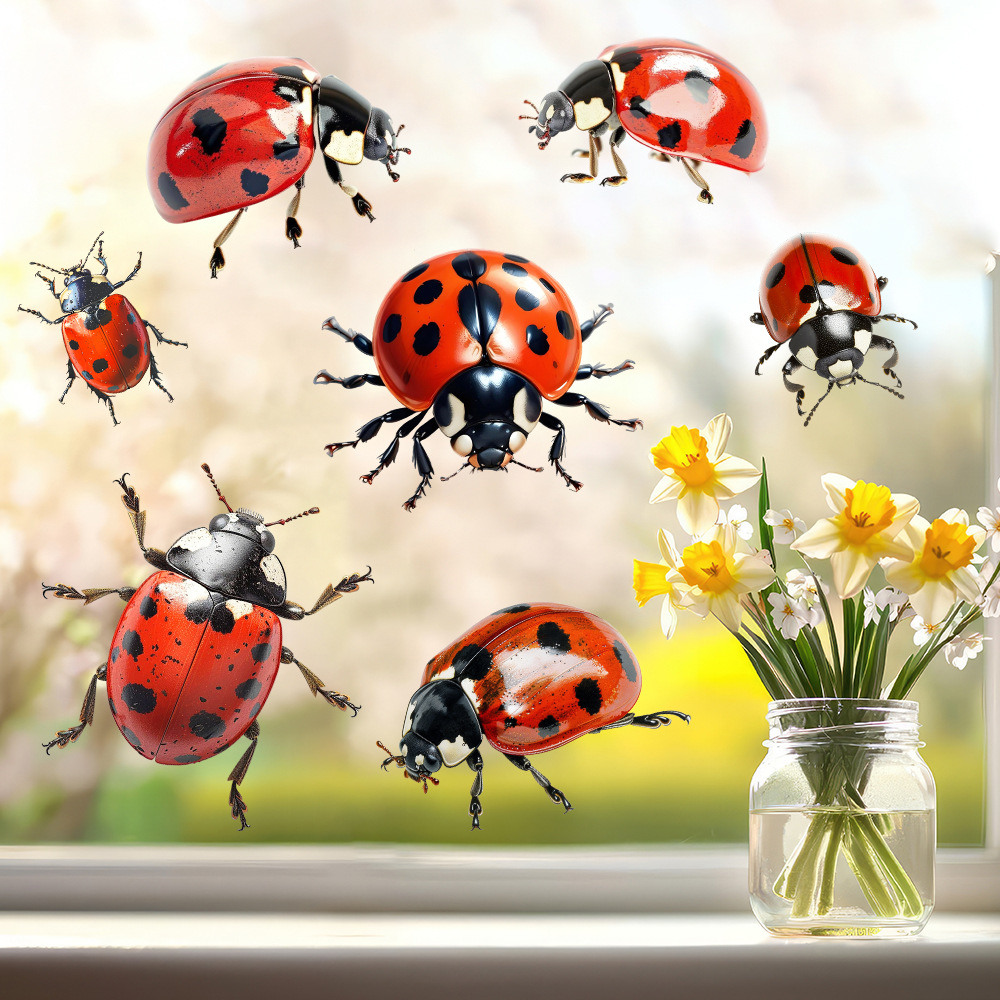 Yiyao JD3489 만화 붉은 무당벌레 유리 창 스티커 유리 도어 및 창 배경 미화 이동식 정전기 스티커