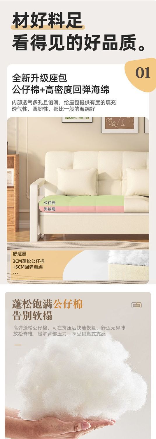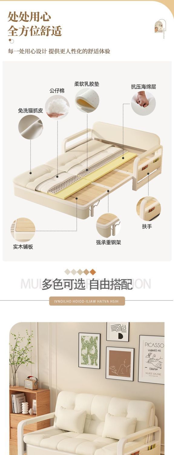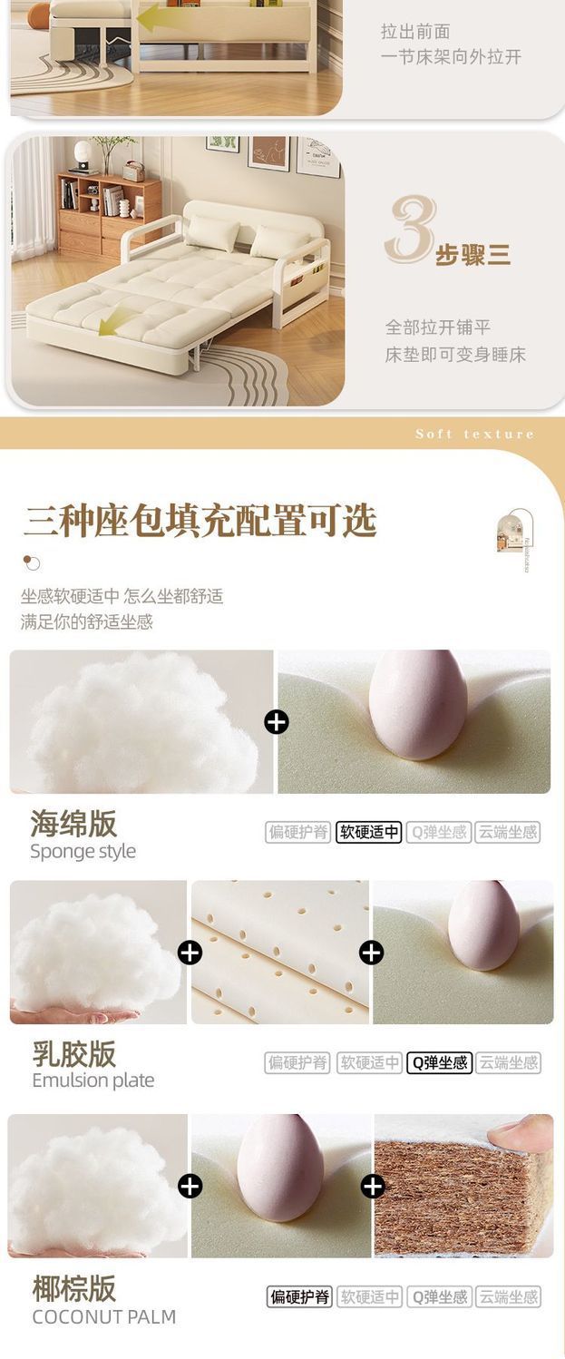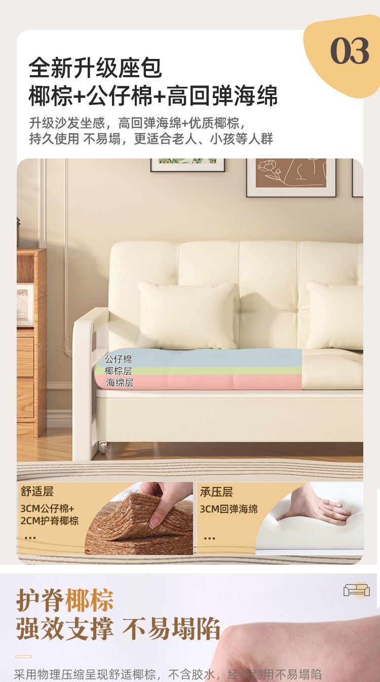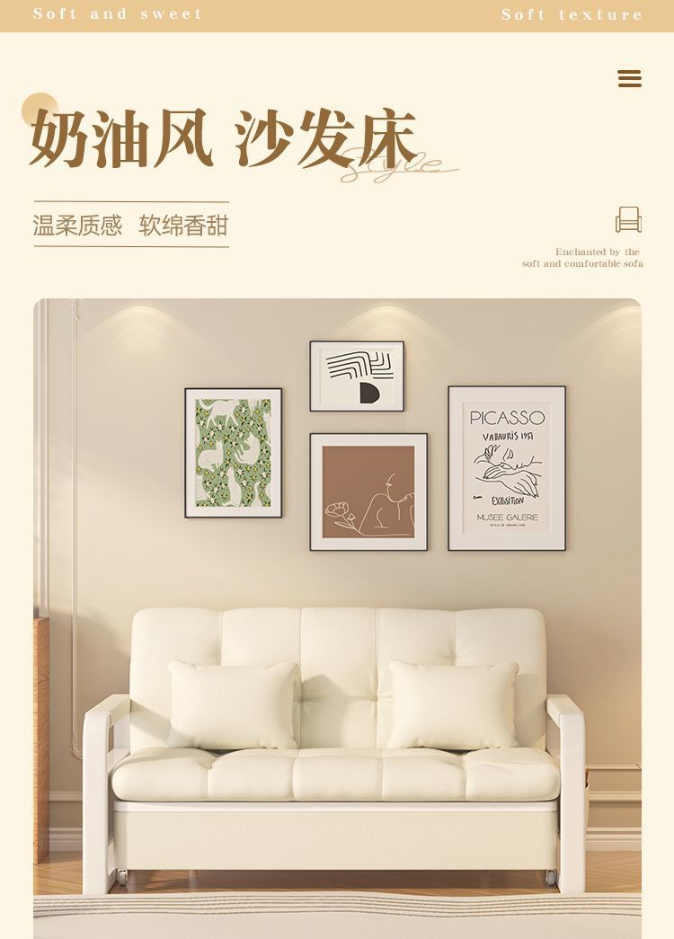 크림 클라우드 접이식 소파 베드 이중 목적 소파 거실 2025 새로운 작은 아파트 텔레스코픽 풀 아웃 침대 임대 집스토어 가기