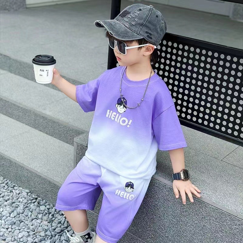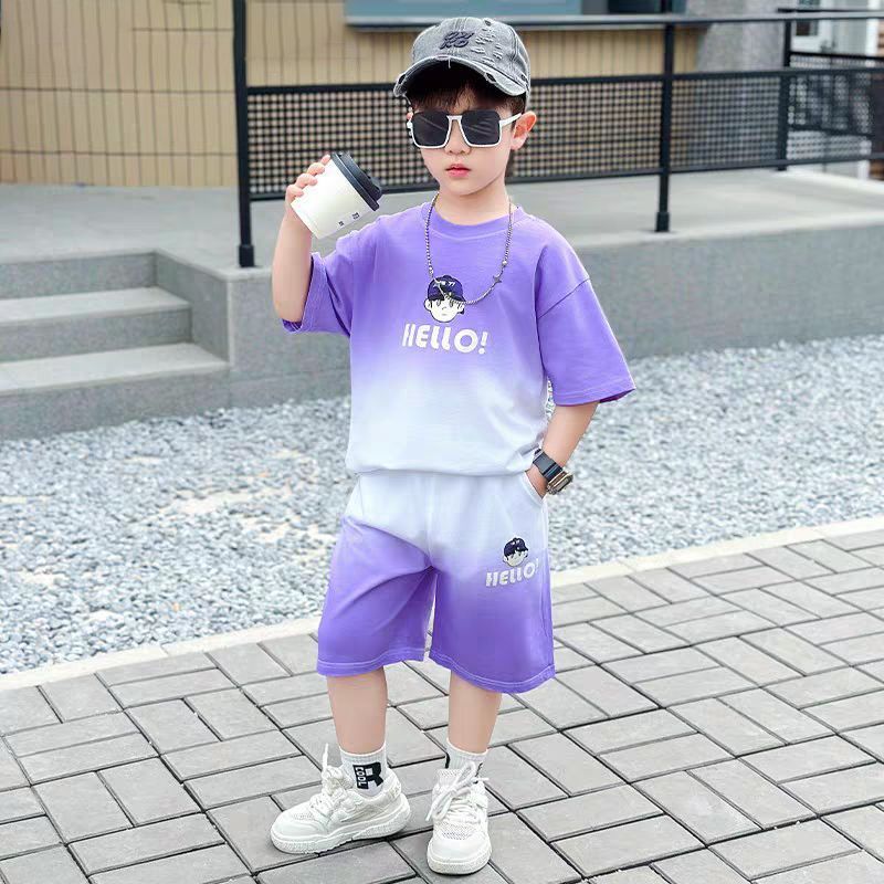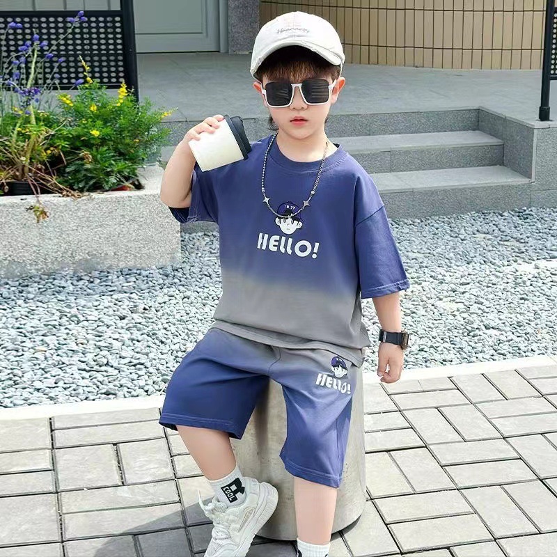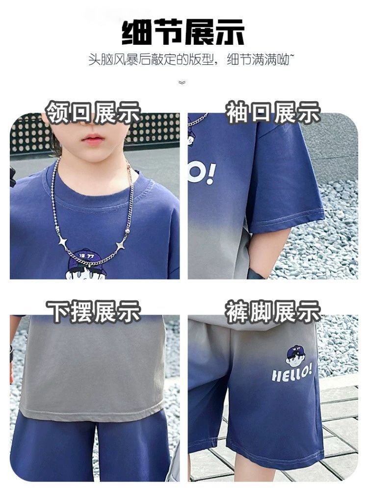남아용 멋진 반팔 양복, 한국식 아동 패션 티셔츠, 5부 바지, 투피스 세트, 남아용 인터넷 연예인 운동복, 트렌디스토어 가기
