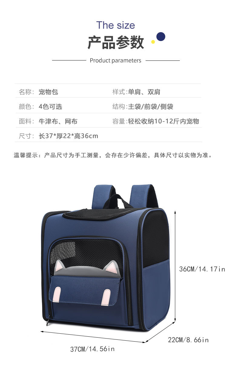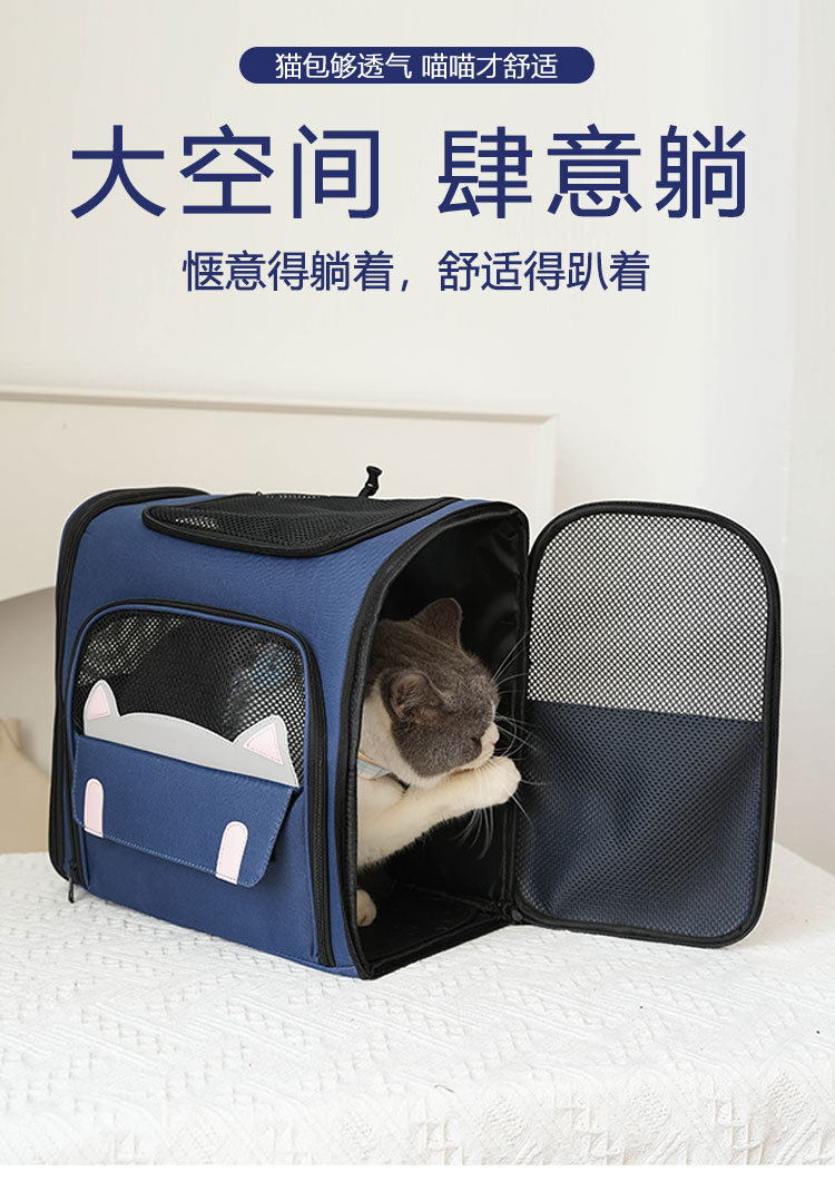 애완 동물 고양이 가방, 사계절 외출에 적합, 편리한 배낭, 휴대용 대형 공간, 편안하고 통기성이 좋은 만화 고양이 가방스토어 가기