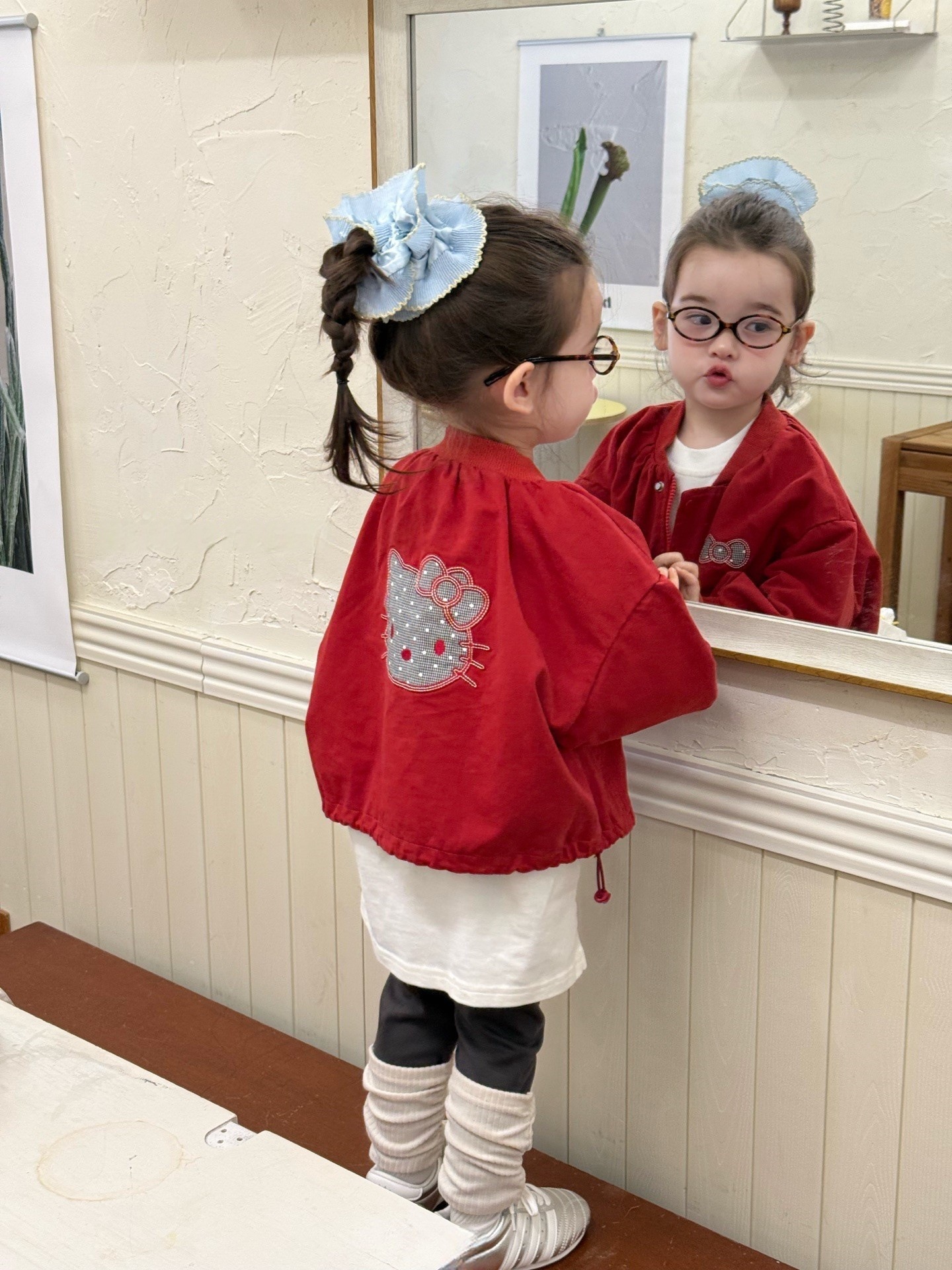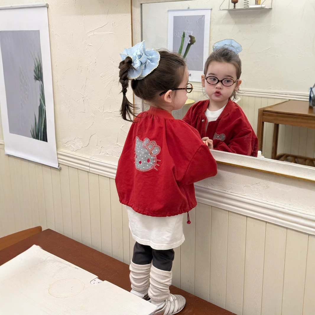 여아 패셔너블하고 다재다능한 외국 스타일 재킷 탑 25 가을 새로운 한국어 버전 kt 고양이 자수 귀여운 캐주얼 재킷 유행스토어 가기