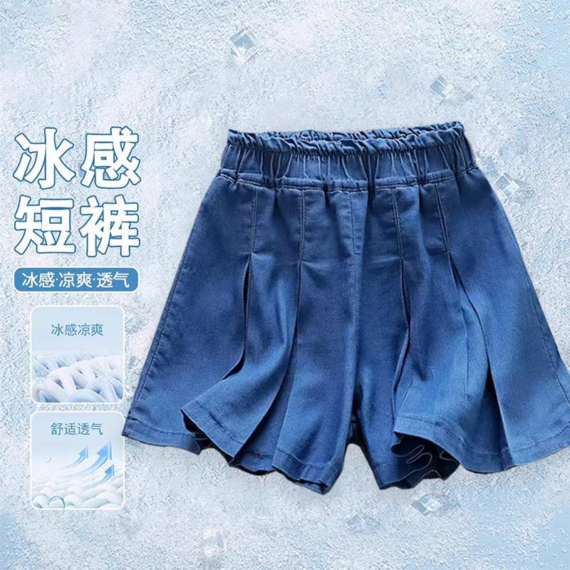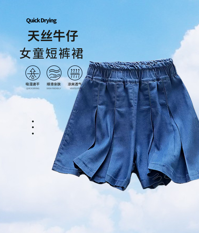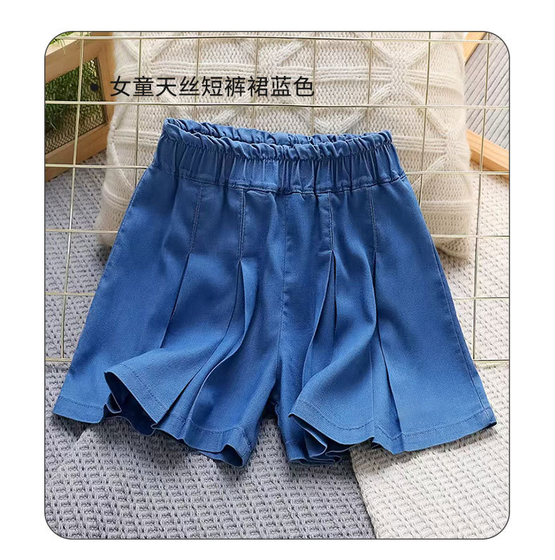 아동복 여아 텐셀 데님 스커트 2026 여름 신상 주름 단색 스커트 어린이 여아 데님 스커트 팬츠