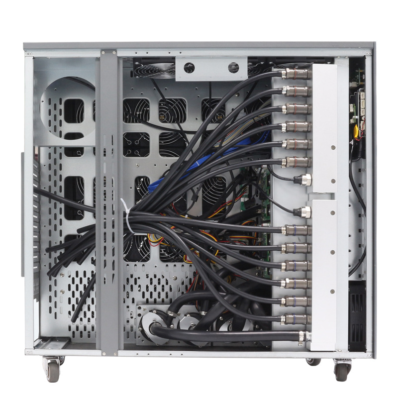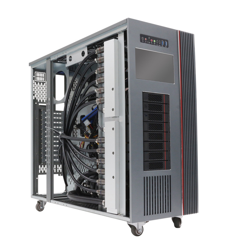 拓普龙塔式机箱尺寸为L633*W280*H570MM,硬盘背板:一组 8盘位3.5寸硬盘背板,支持4个480冷排位,采用分水器方式,在计算性能、拓展能力、温度控制、稳定性等方面都显示出超凡的实力,能最大程度满足人工智能等新兴领域的开发与应用,适用于HPC、大数据分析、3D 图形应用、视频解码、深度学习、科学计算等应用场景。