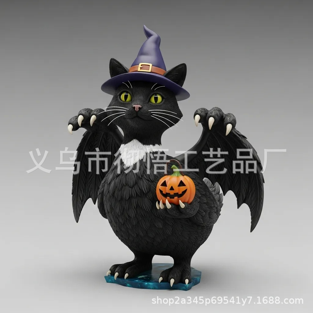 국경을 넘는 새로운 할로윈 검은 고양이 오리 할로윈 검은 고양이 오리 수지 동상 장식품스토어 가기