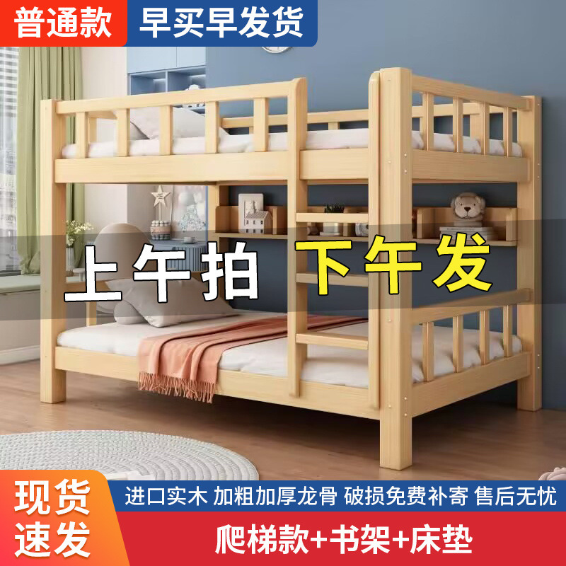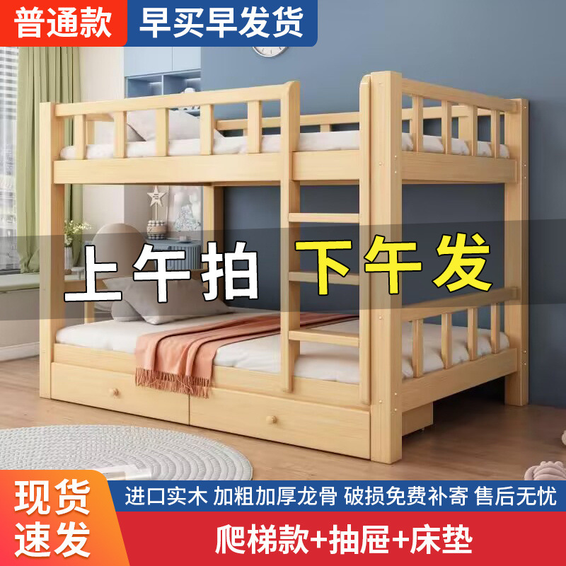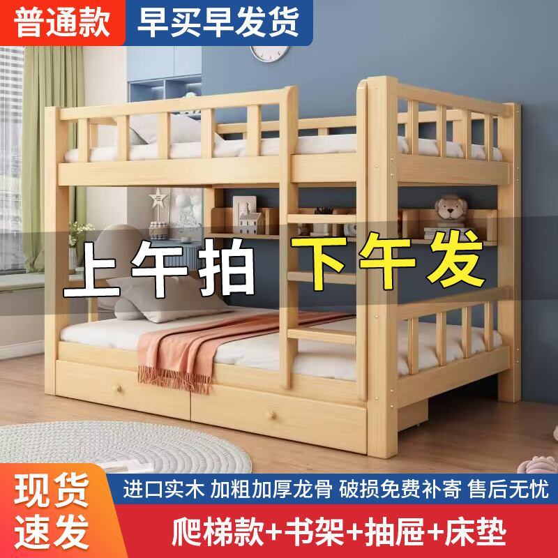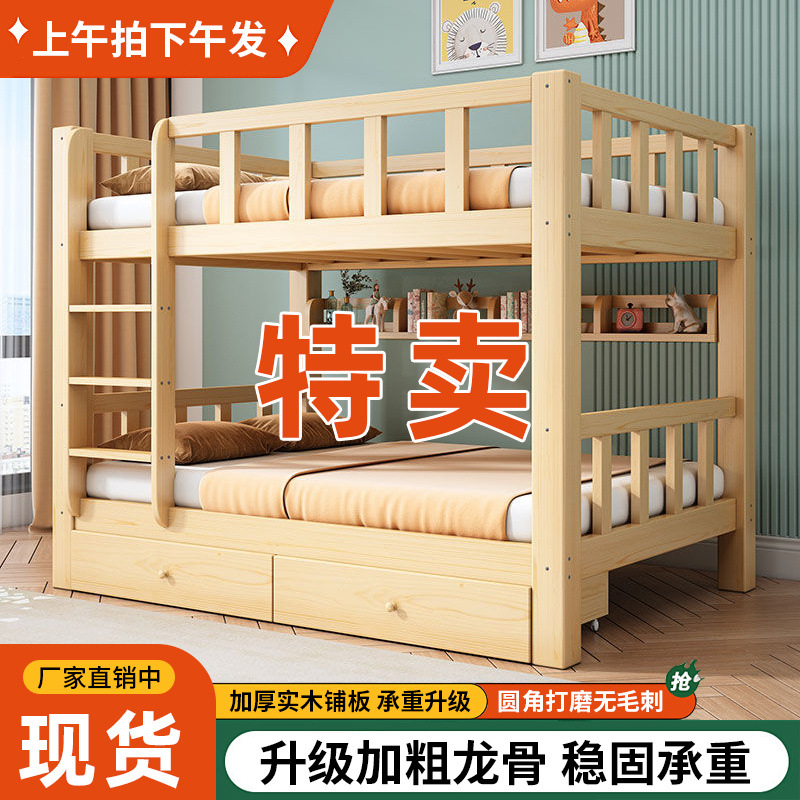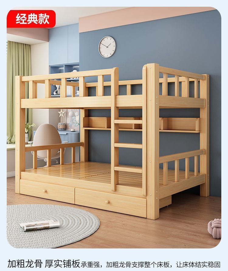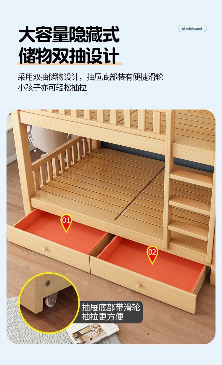 원목 이층침대, 풀세트 침대, 원목 하이앤로우 침대, 성인용 다기능 소형 아파트 어린이 이층침대