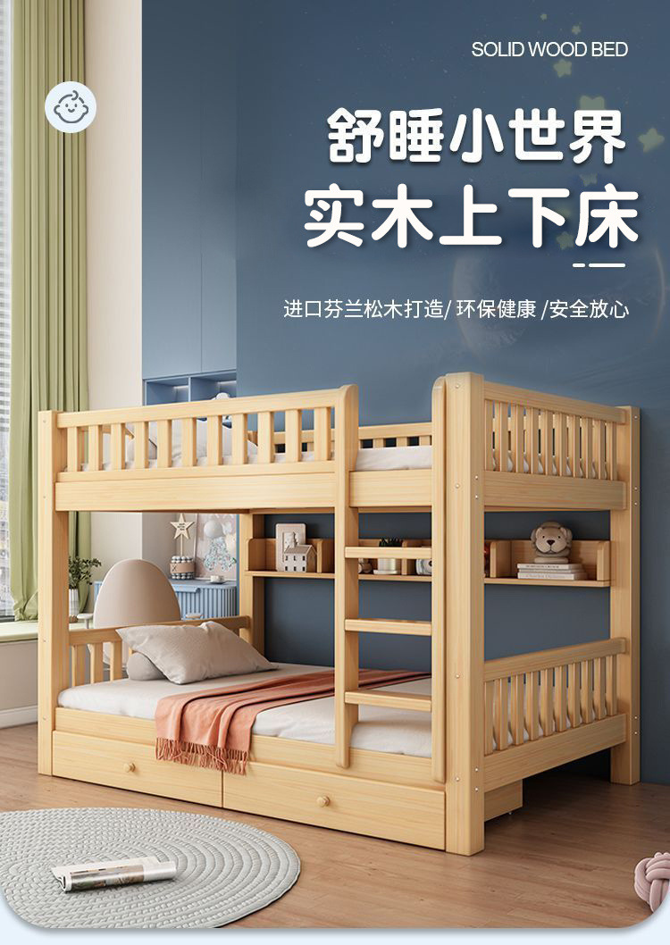 원목 이층침대, 풀세트 침대, 원목 하이앤로우 침대, 성인용 다기능 소형 아파트 어린이 이층침대스토어 가기