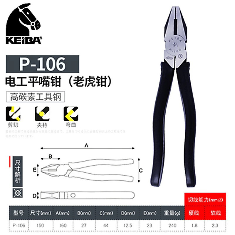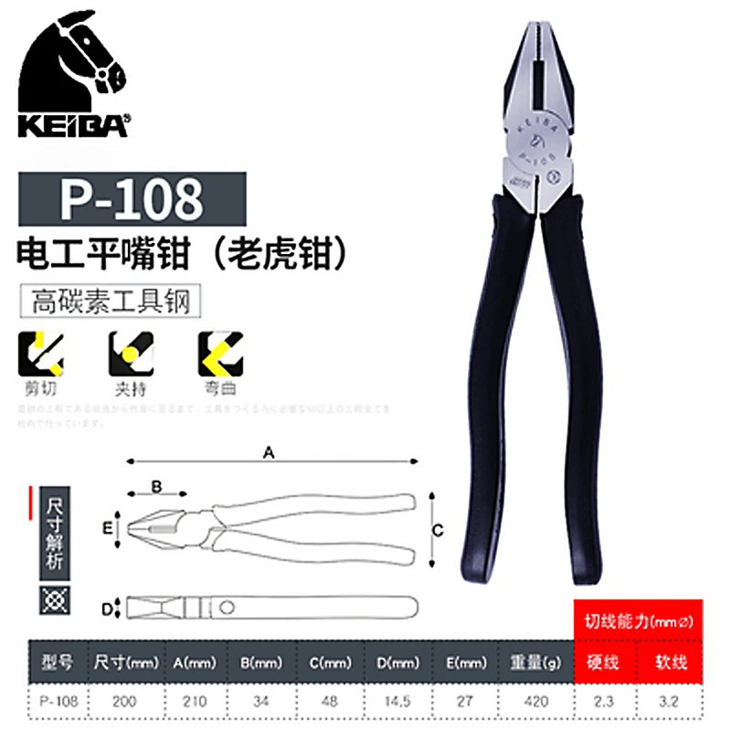 일본 수입 KEIBA 코니카 미츠비시 산업용 등급 와이어 커터 6/7/ 8inch 전기 바이스 P-106/107-108스토어 가기