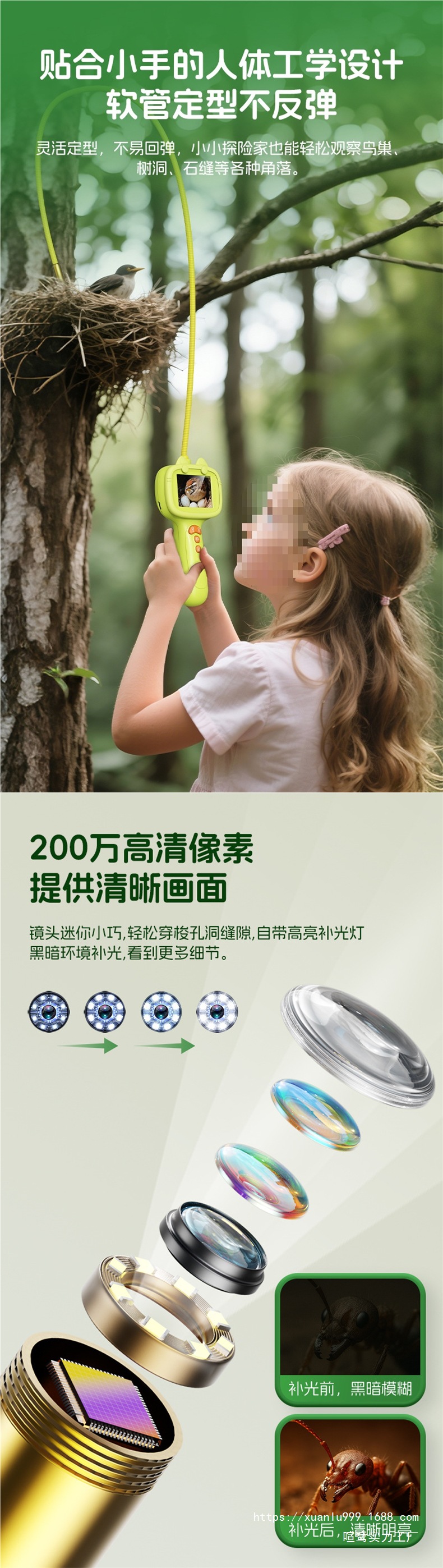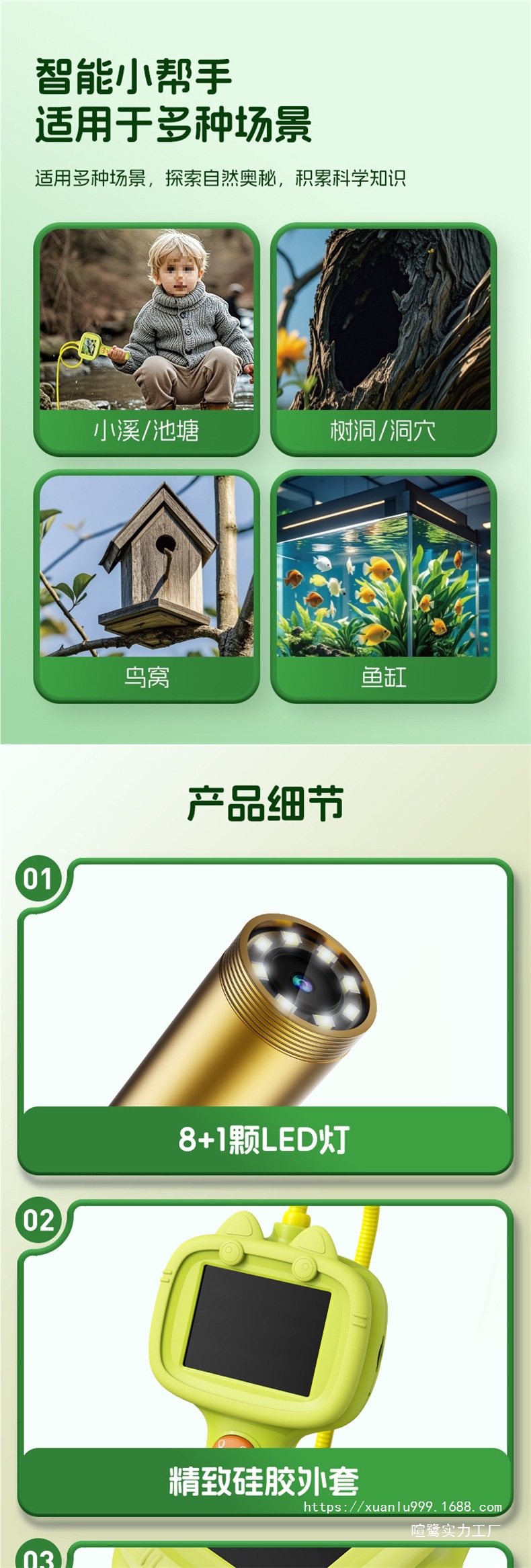 국경 간 신제품 2.4inch 스크린 어린이 휴대용 과학 실험 장난감 2백만 픽셀 고화질 내시경스토어 가기