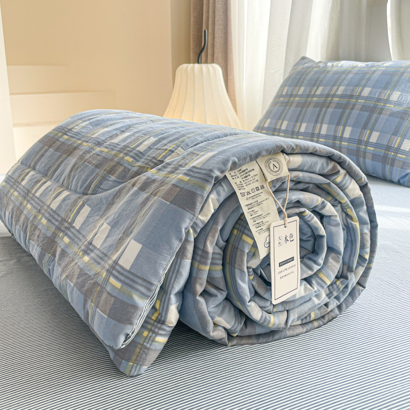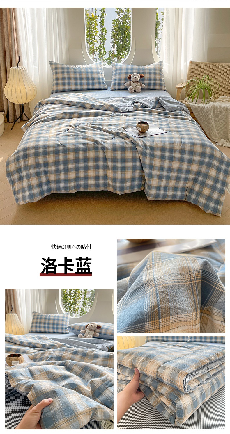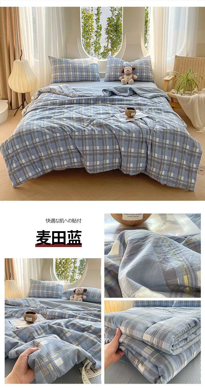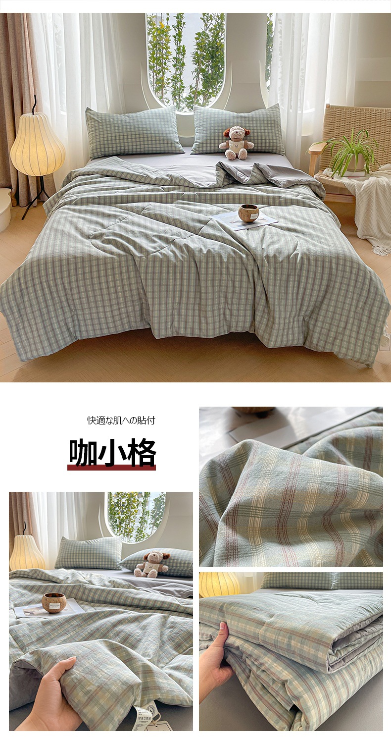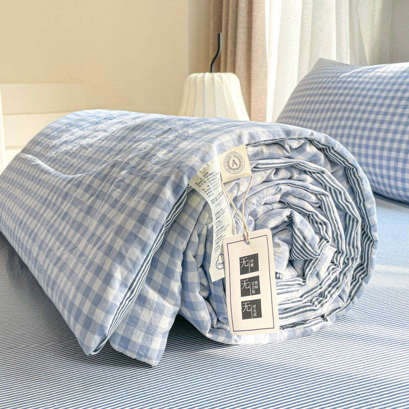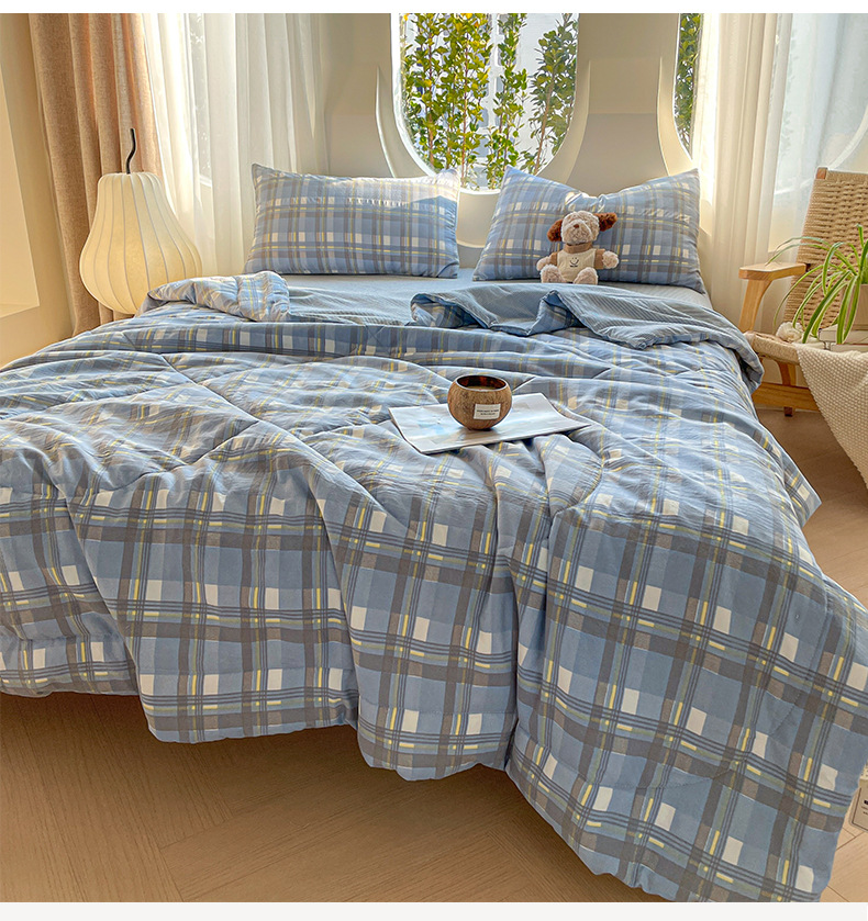 클래스 A 엄마와 아기 구름 면 인쇄되지 않은 스타일 여름 이불 에어컨 이불 워시 코튼 격자 무늬 싱글 및 더블 여름 얇은 이불 도매스토어 가기