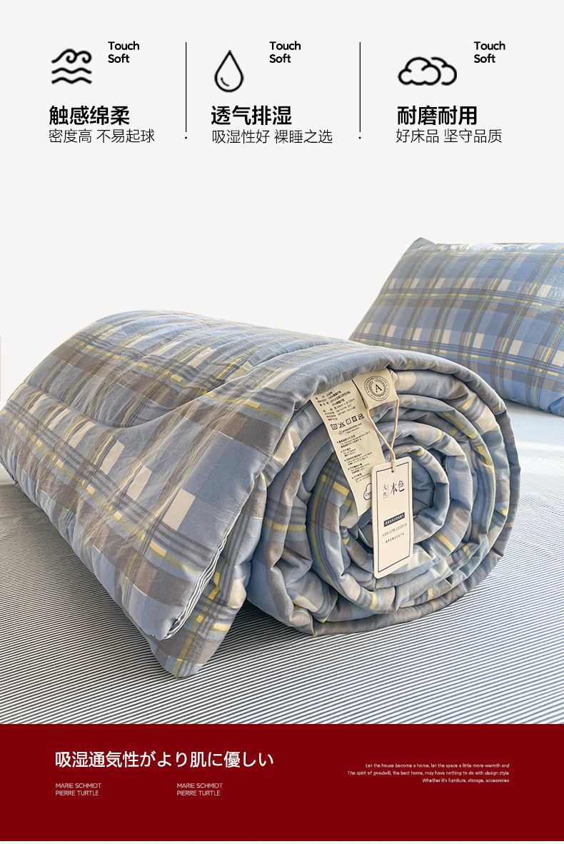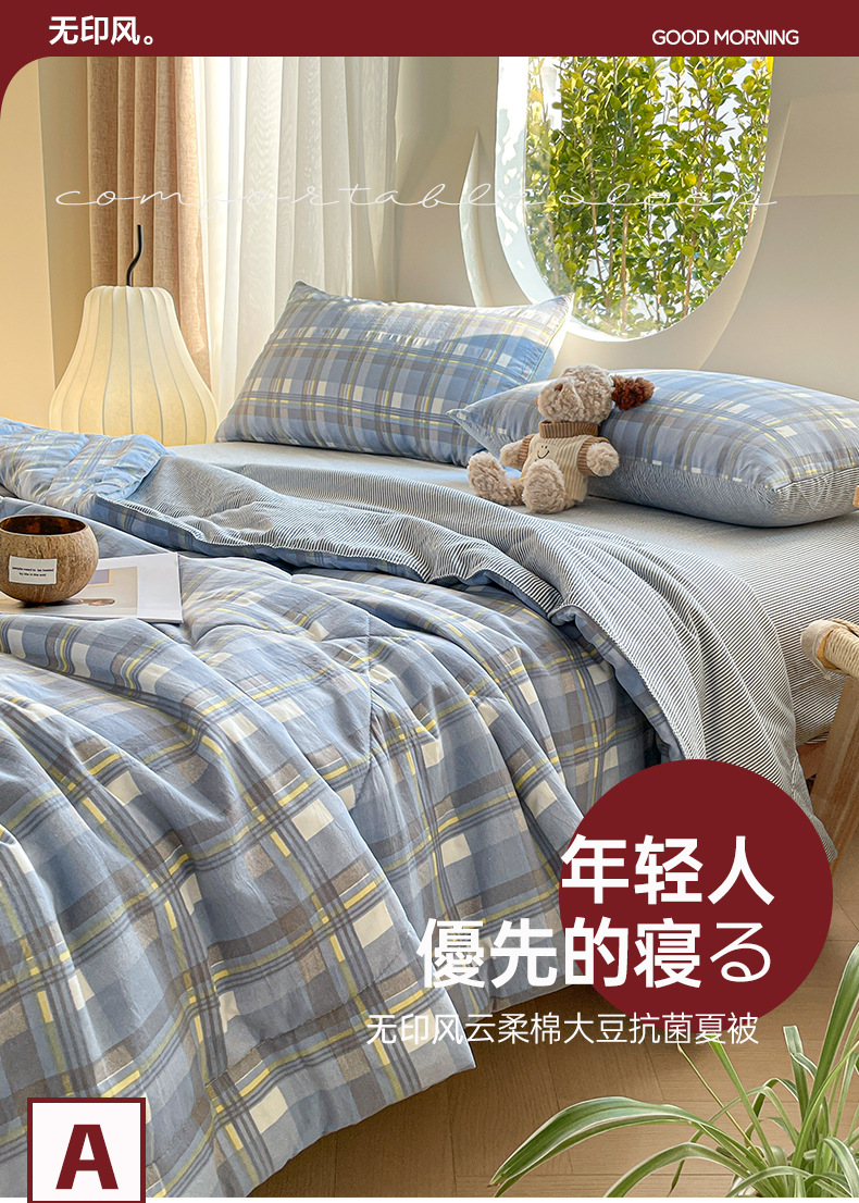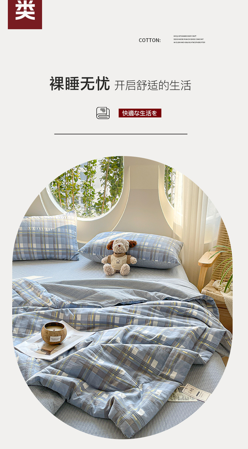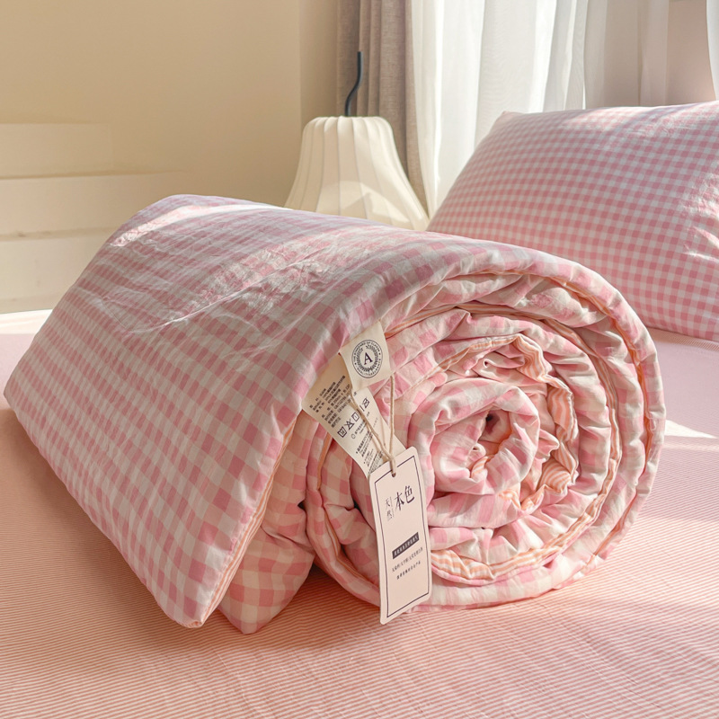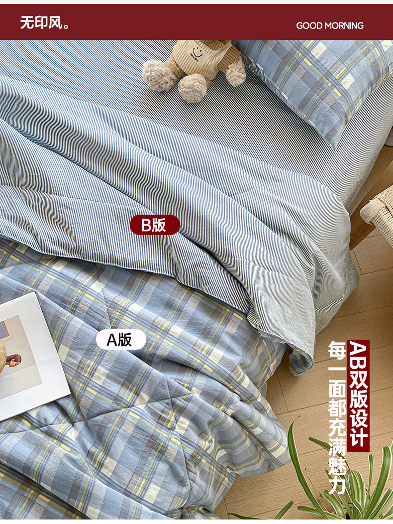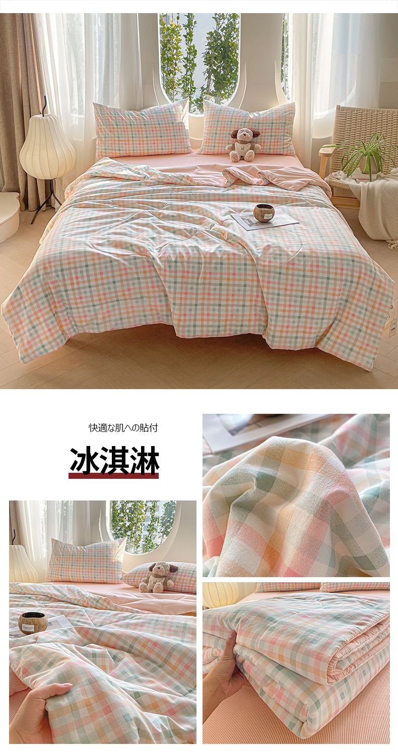 클래스 A 엄마와 아기 구름 면 인쇄되지 않은 스타일 여름 이불 에어컨 이불 워시 코튼 격자 무늬 싱글 및 더블 여름 얇은 이불 도매스토어 가기