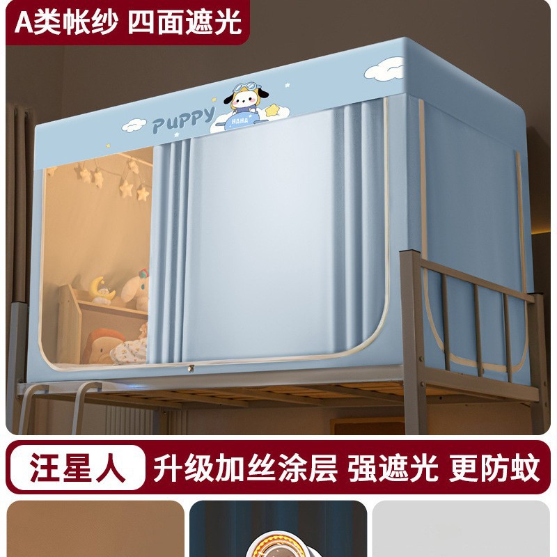 완전 차광 학생 기숙사 모기장 침대 커튼 일체형 싱글 침대 이층침대 무설치 풀커버 침실 침대 커튼