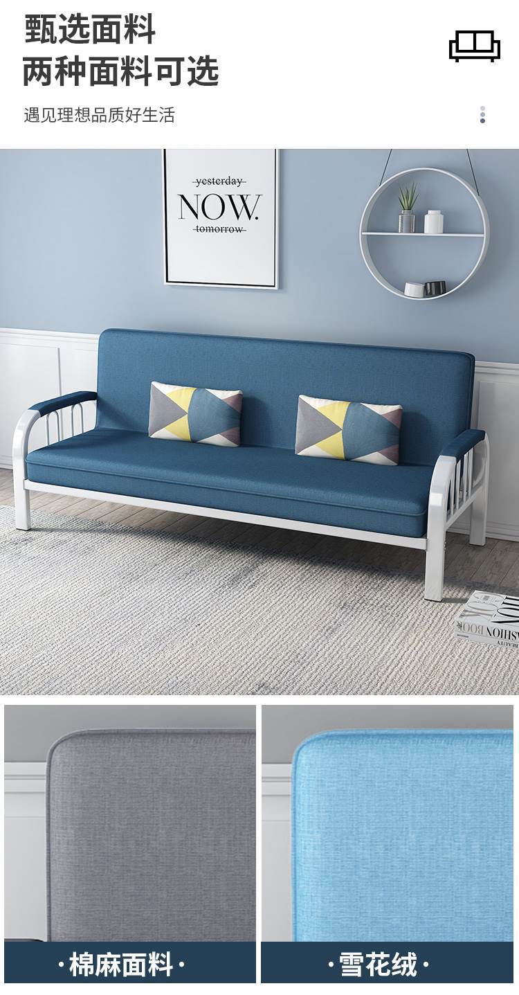 패브릭 소파 베드, 이중 목적 거실, 다기능, 간단한 임대 주택, 소형 아파트, 접이식 침실, 철제 경제스토어 가기