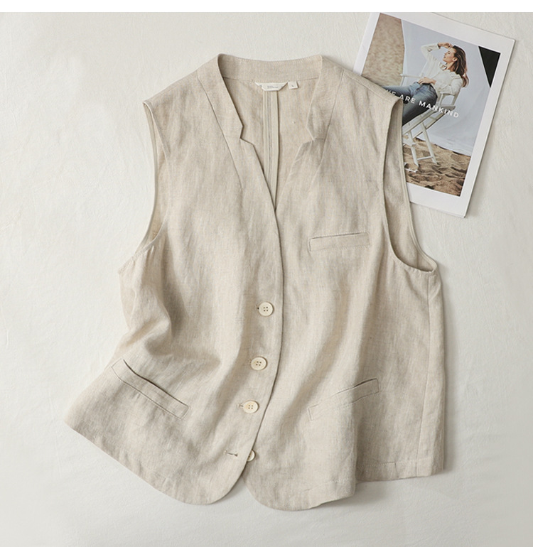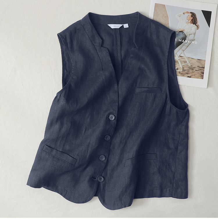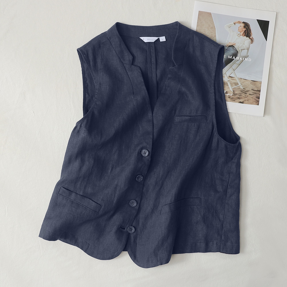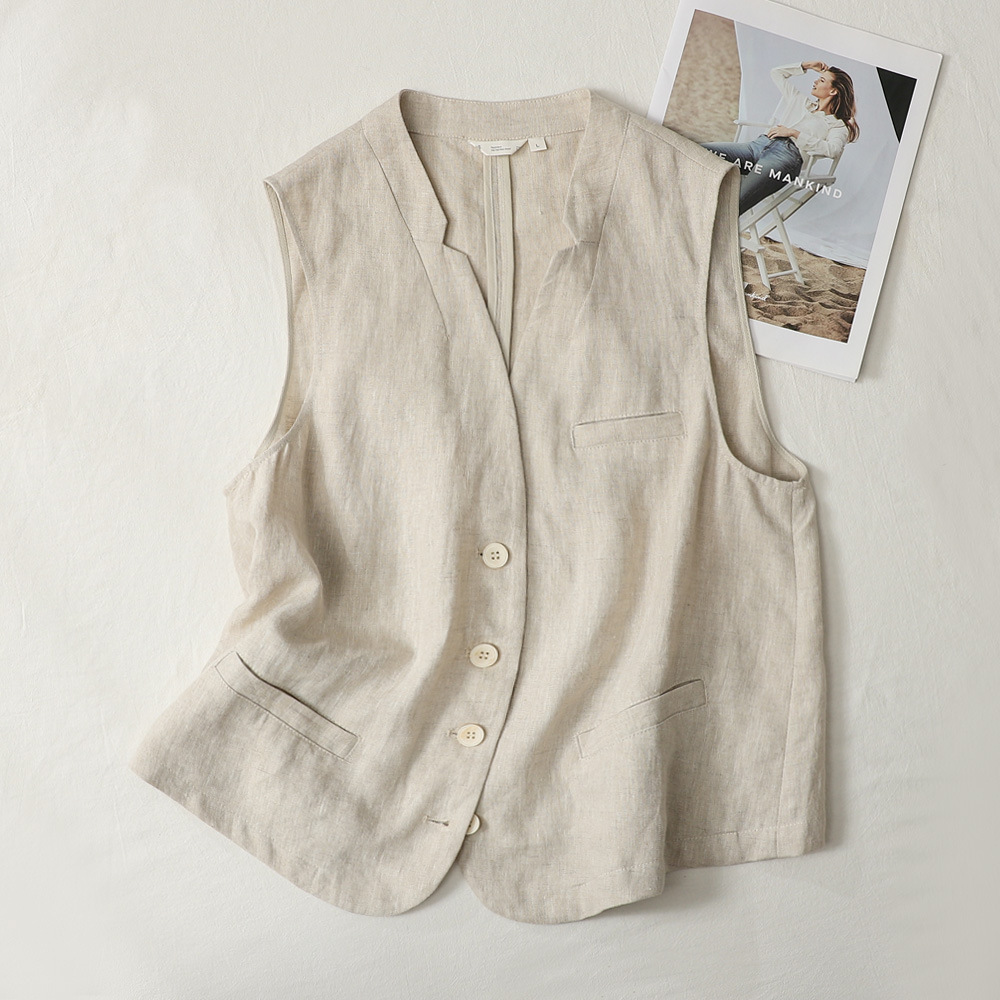 누락된 상품~ 일본 오리지널 코튼 린넨 여성용 조끼, 루즈하고 슬림한 레이어드 브이넥 얇은 조끼와 린넨 조끼 아우터 탑