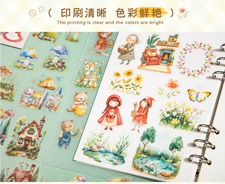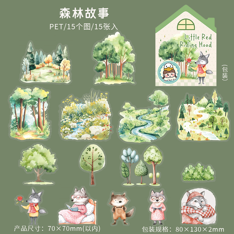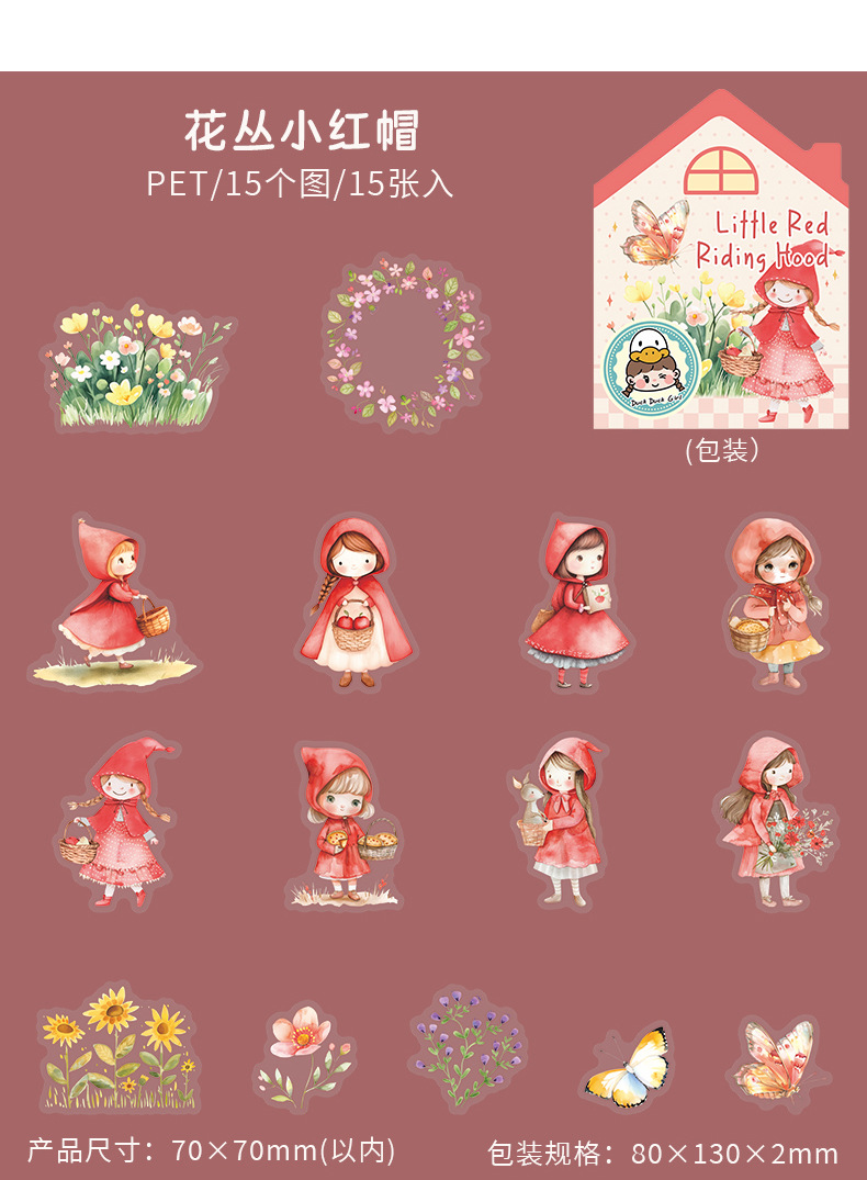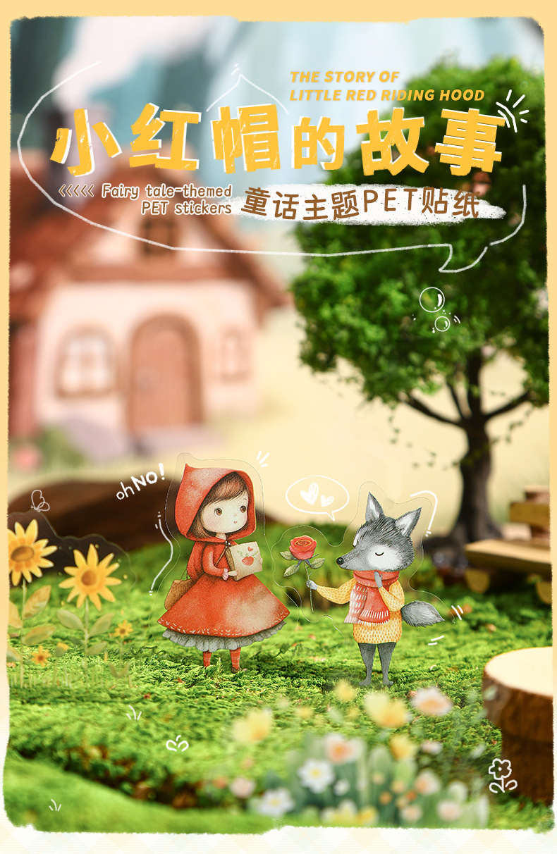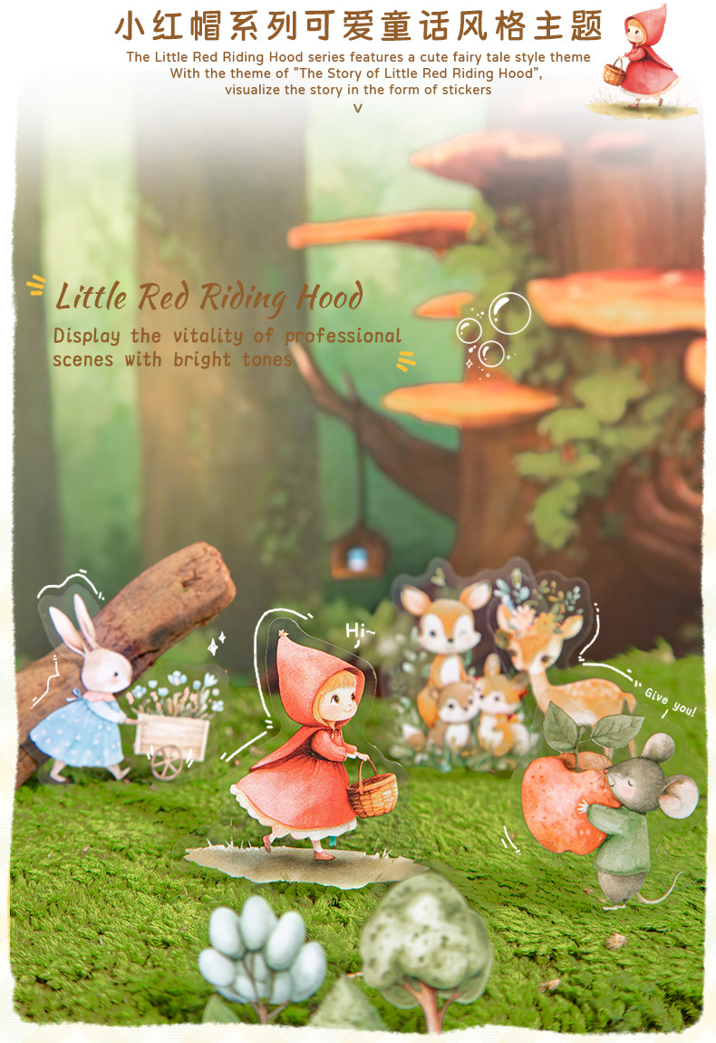 빨간 모자 이야기 동화 PET 다이 컷 스티커 귀여운 동물 캐릭터 핸드북 장식 스티커 diy 재료스토어 가기