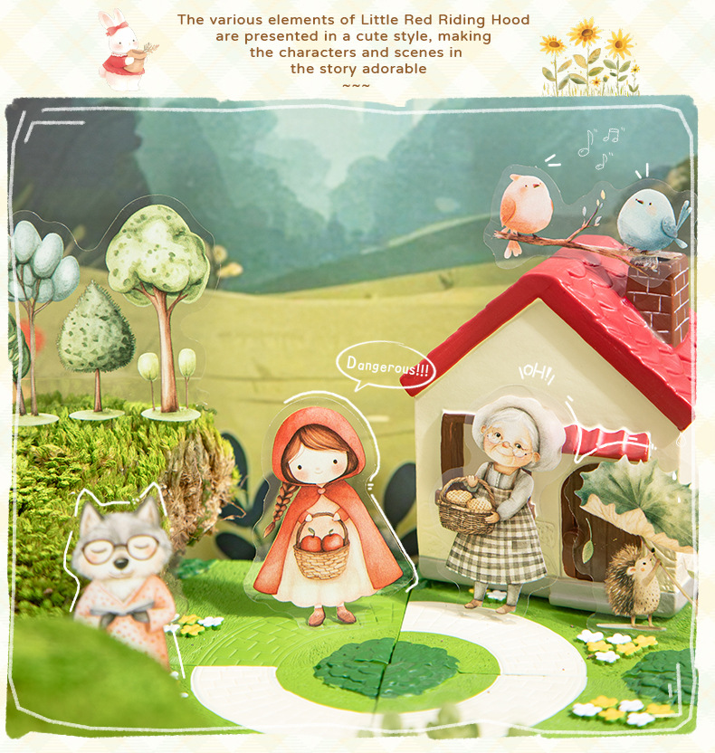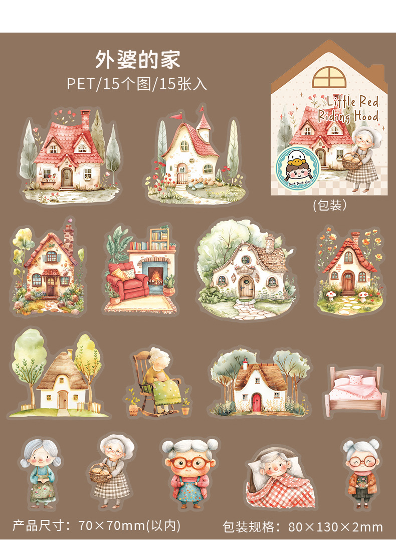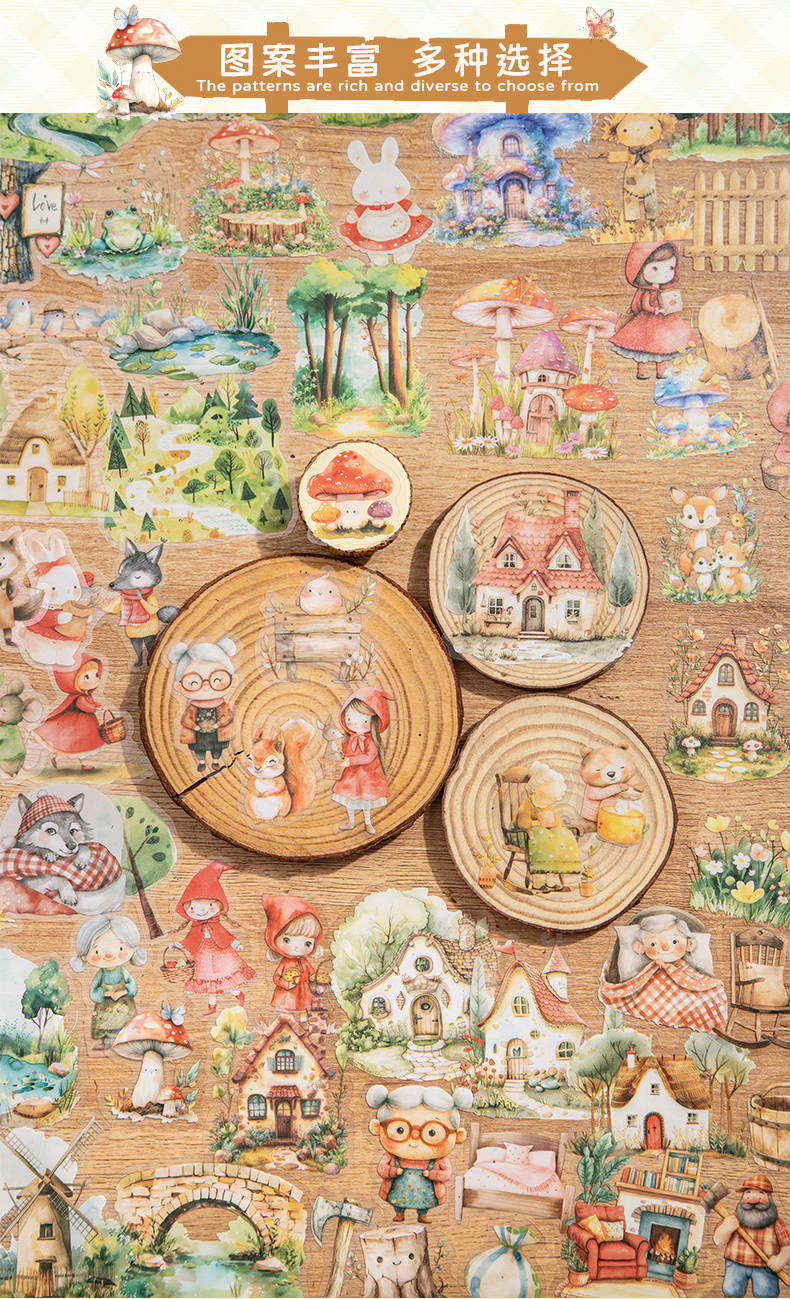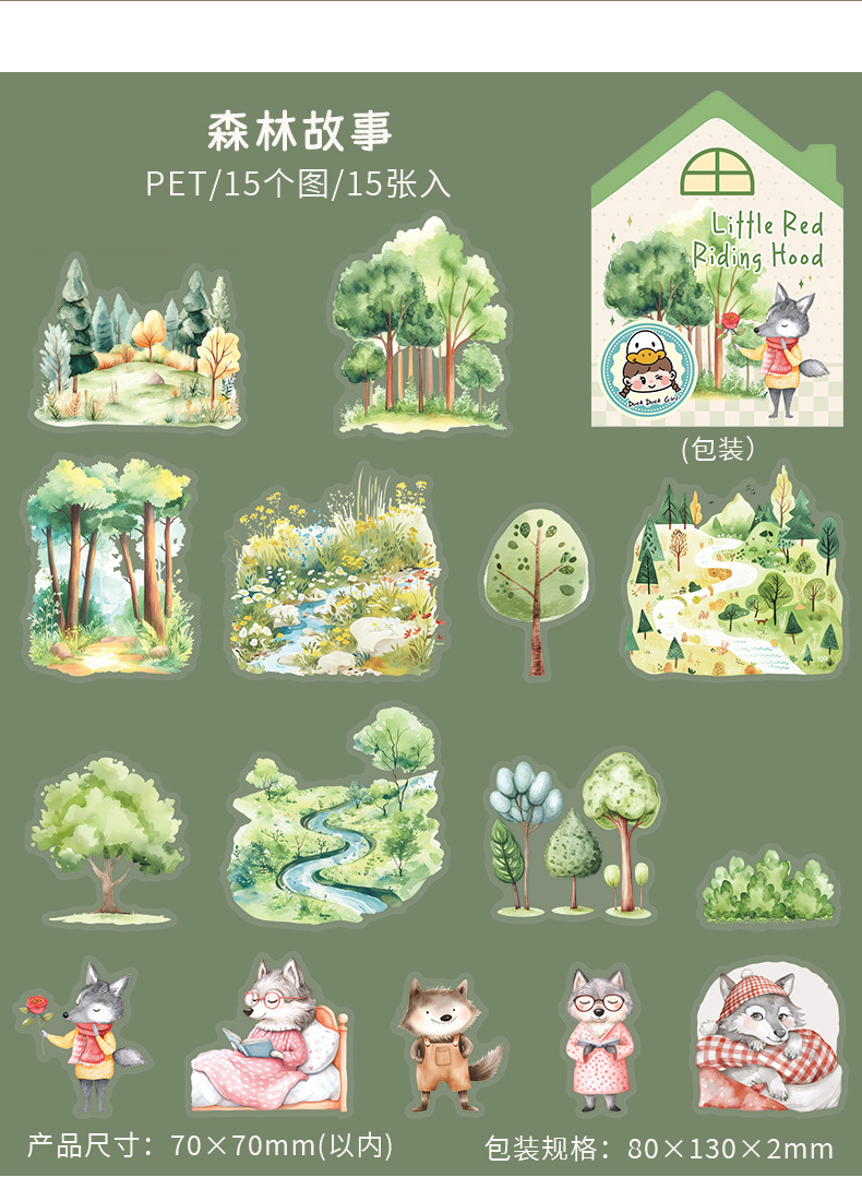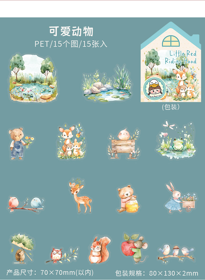 빨간 모자 이야기 동화 PET 다이 컷 스티커 귀여운 동물 캐릭터 핸드북 장식 스티커 diy 재료스토어 가기