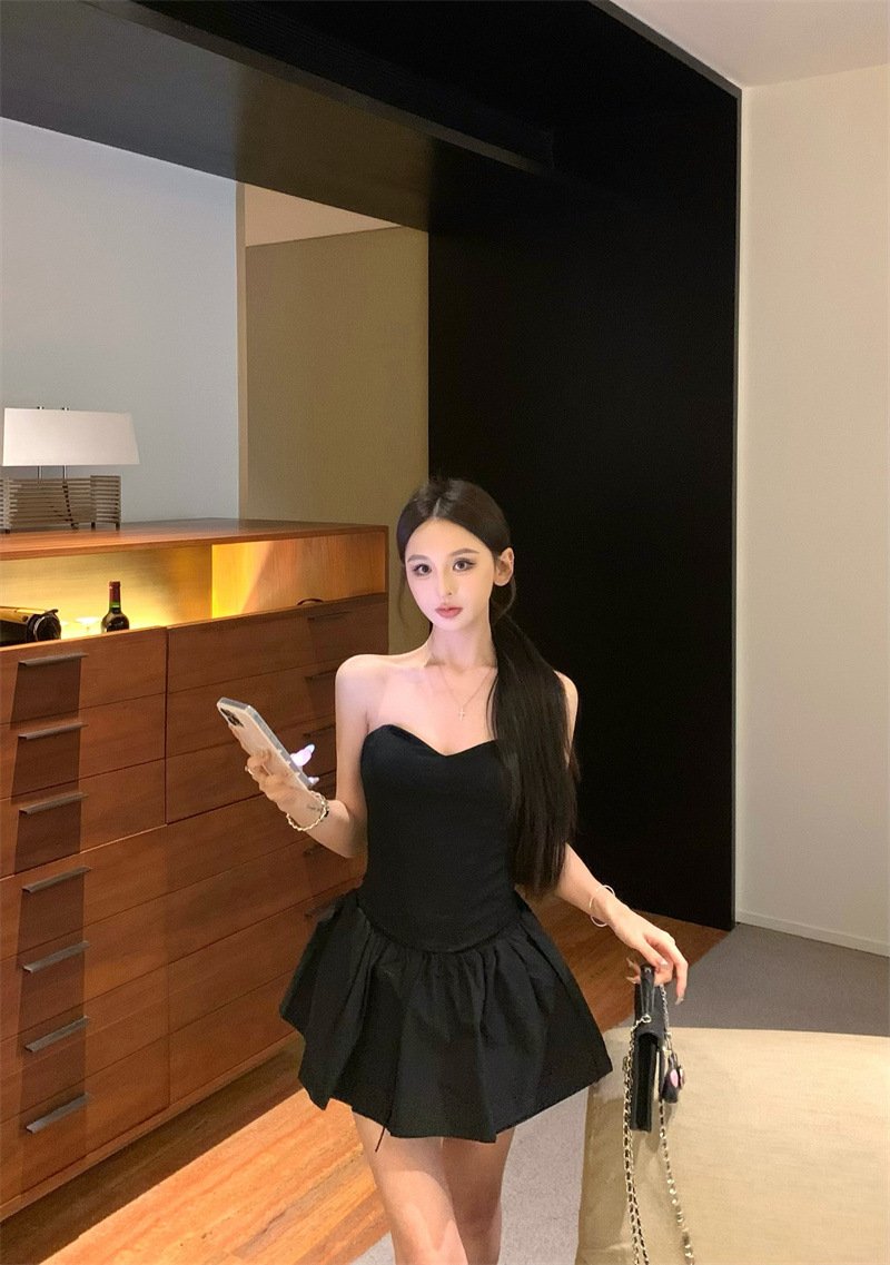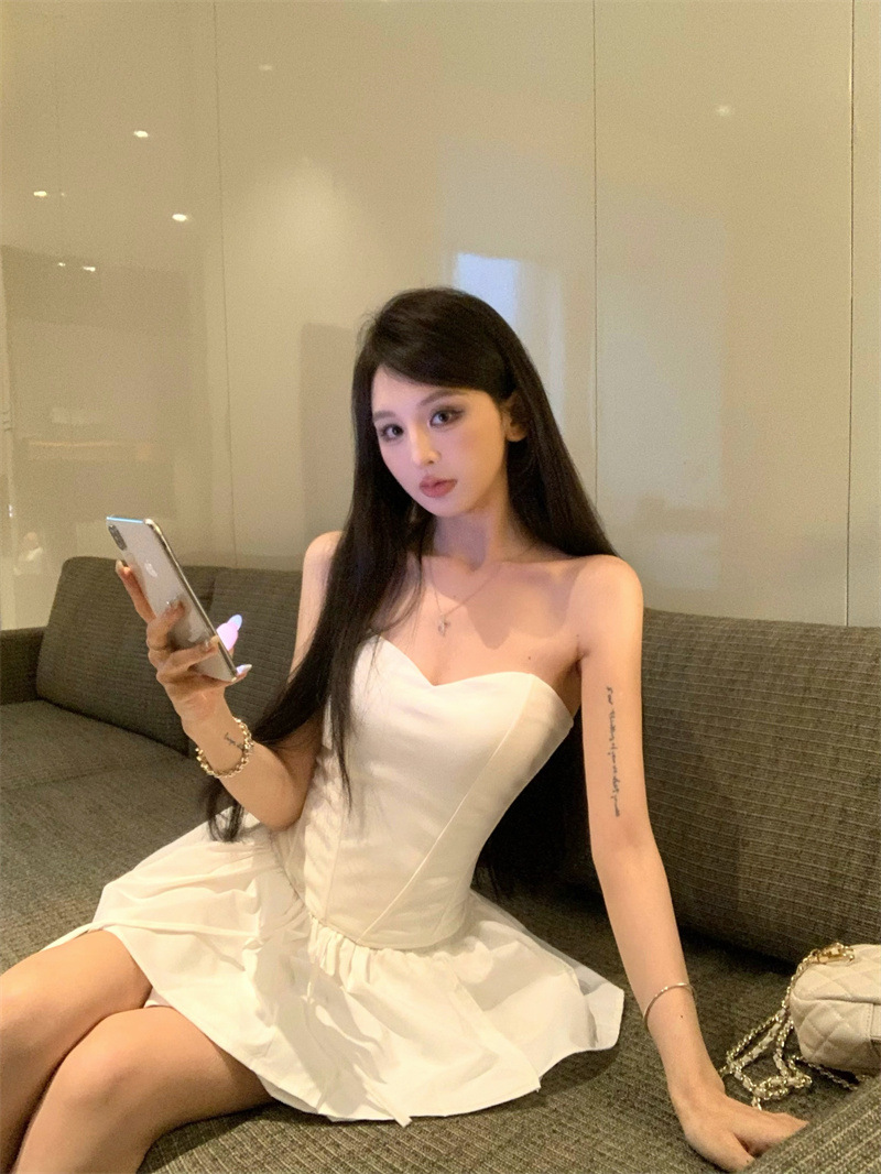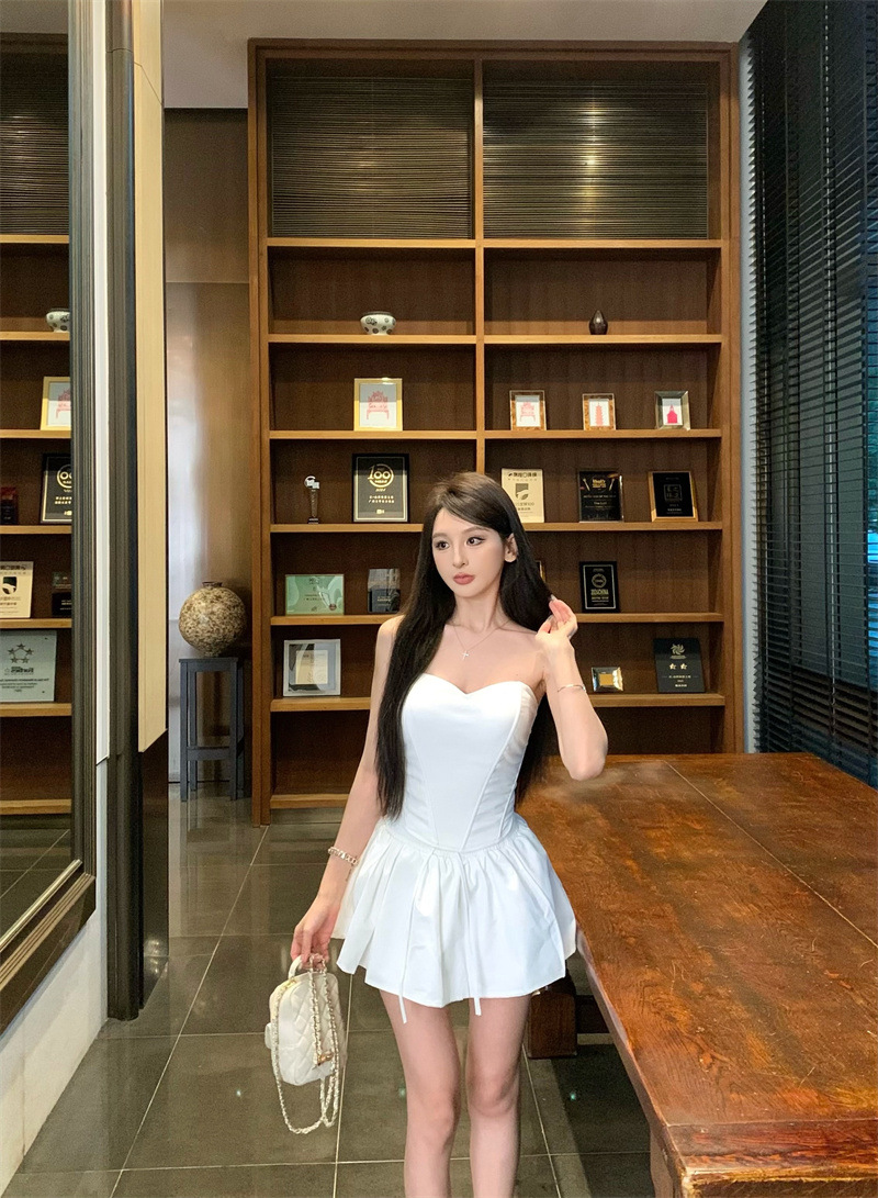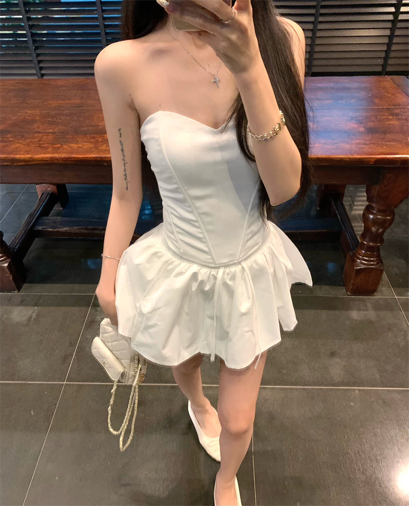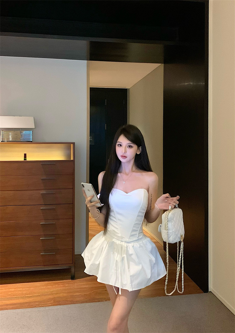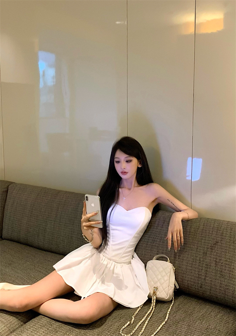 투피스 스커트 세트, 여름 패션 핫걸 피쉬본 튜브탑, 민소매 탑, 여성용 퍼프 스커트 및 치마바지스토어 가기